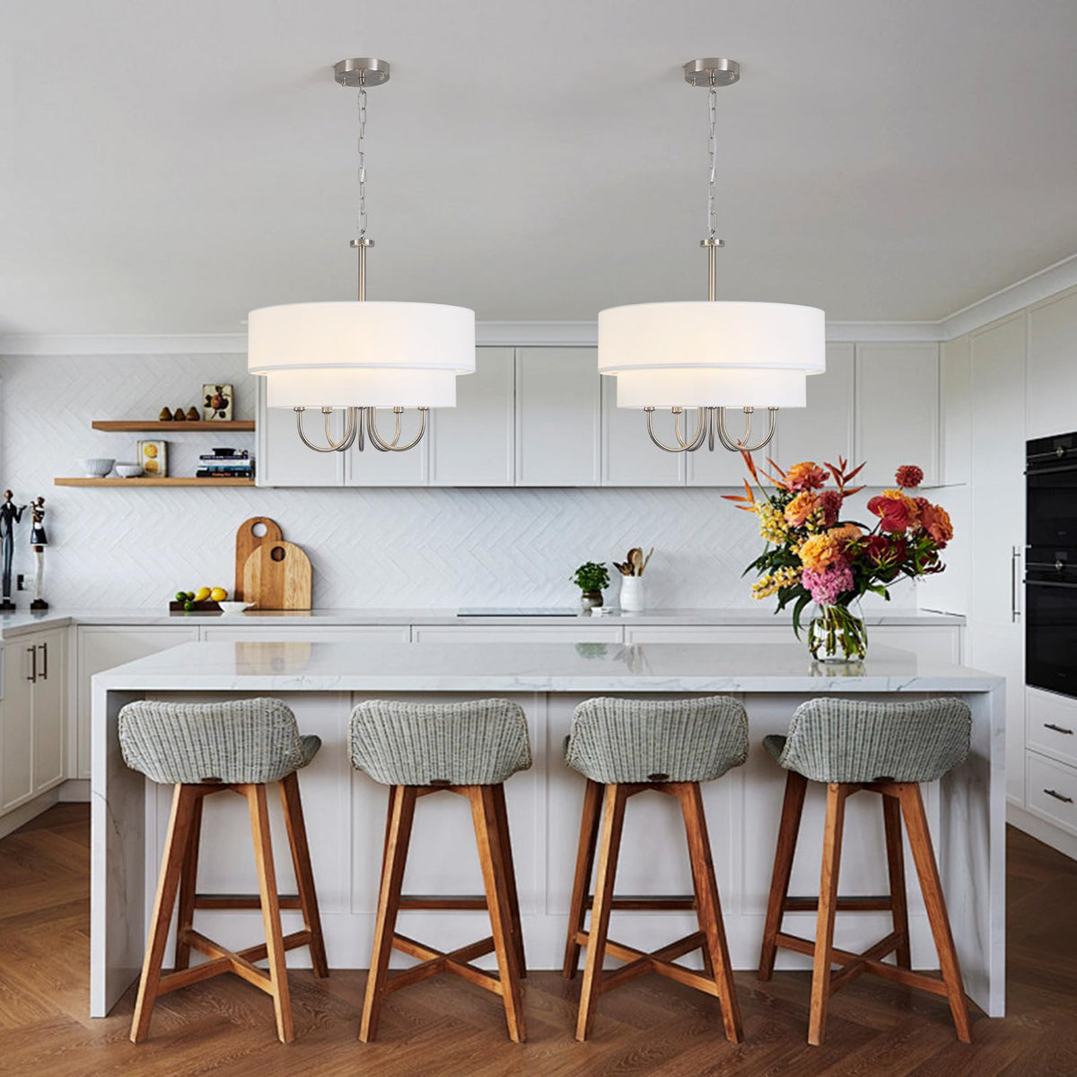 Modern Drum Chandeliers For Dining Room 5 Light Brushed Nickel Chandelier With Shades Contemporary Farmhouse Light Fixtures Hang