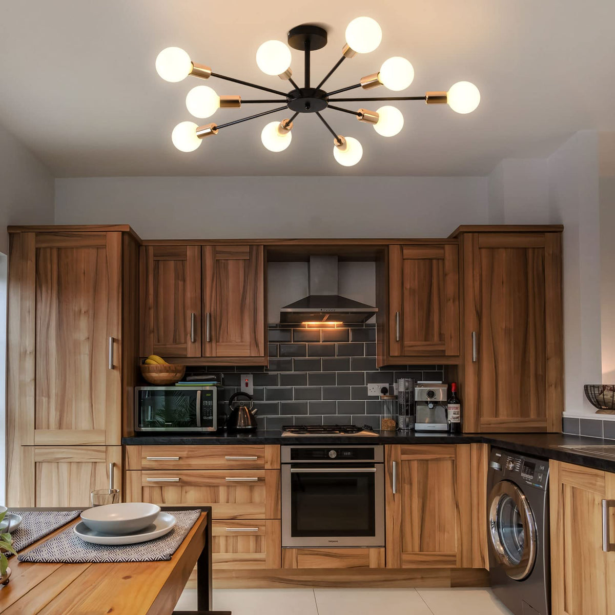 Modern Flush Mount Ceiling Light Metal Art Industrial Ceiling 10 Lights Black Sputnik Painted Finish Chandelier For Kitchen Farm