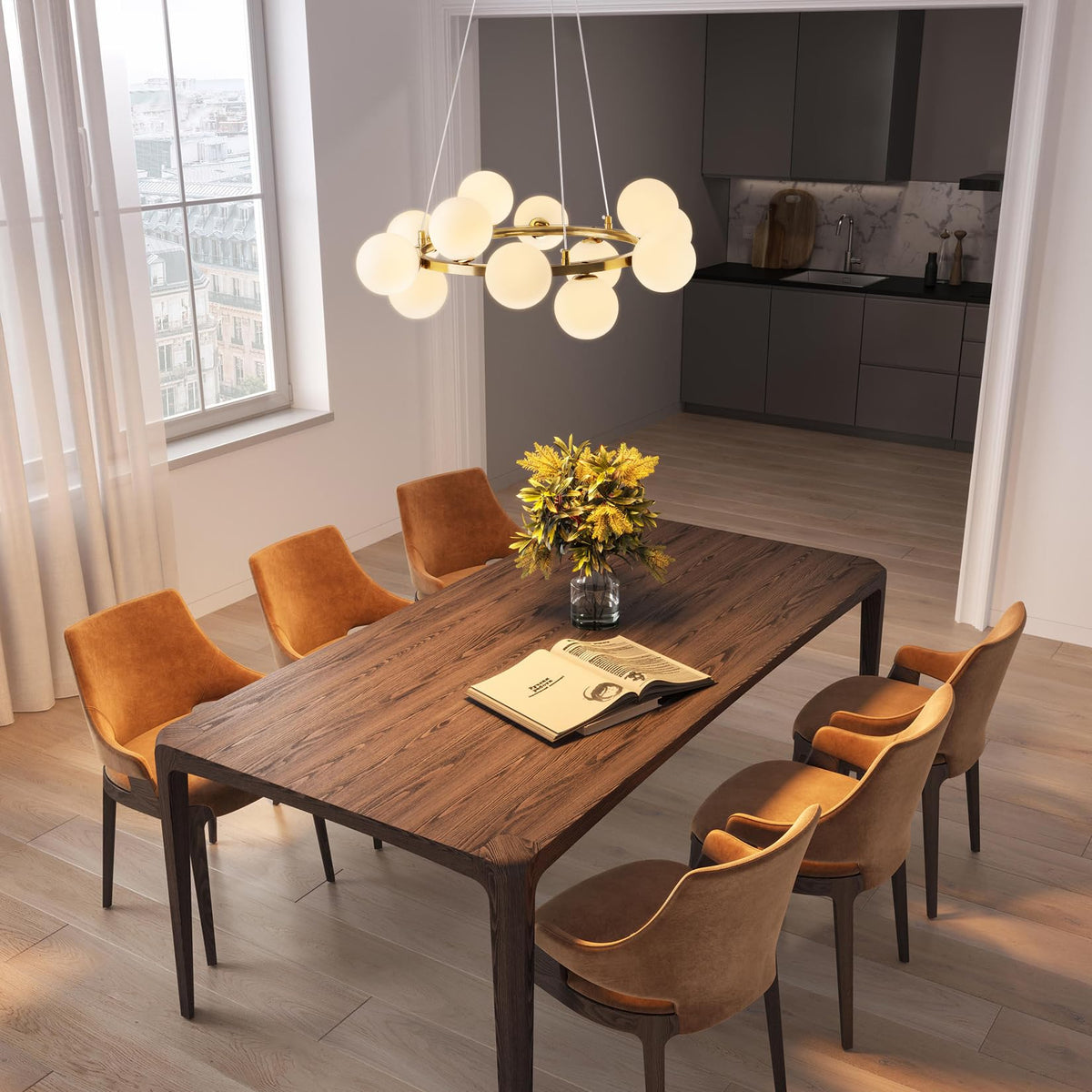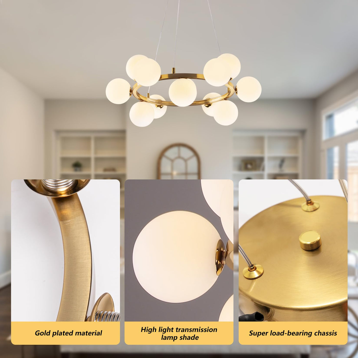 This 12 Head Gold Chandelier, With Its Modern And Minimalist Design, Will Be The Highlight Of Your Space. The Globe Chandelier Is Made Of High Quality Metal With A Fine Finish That Is Both Durable And Highly Stylish. Each Head Comes With A White Shade That Softens The Light And Creates A Cozy And Pleasant Dining Atmosphere. The Bubble Pendant Lamp Is Height Adjustable To Suit Different Ceiling Heights And Space Requirements And Is Easy To Install, Making It Suitable For A Wide Range Of Interior Styles. Whether It'S A Family Dining Room, Cafe Or Hotel, The Bubble Lighting Fixture Can Be The Highlight Of The Space With Soft Light, It'S Also Perfect For Use As A Kitchen Chandelier Or Kitchen Island Lighting, Making Every Space Cozy And Modern.