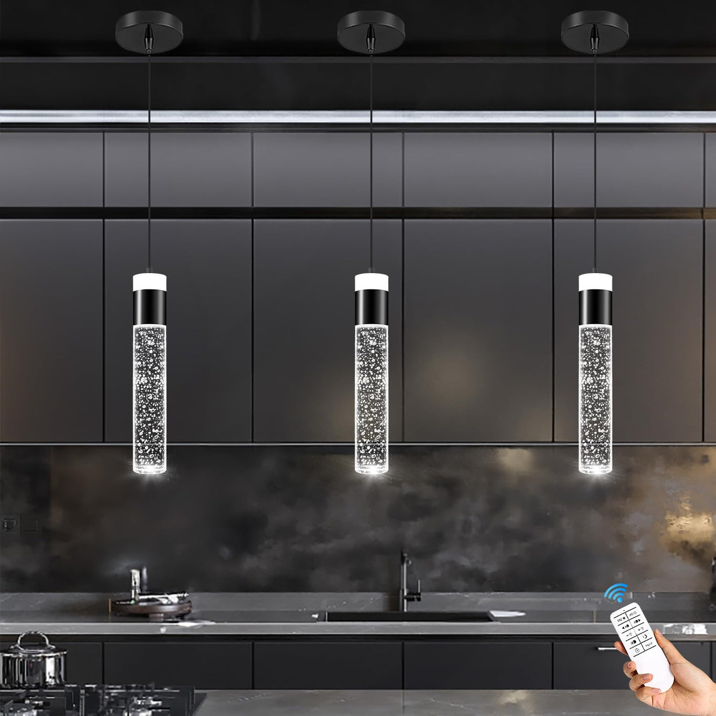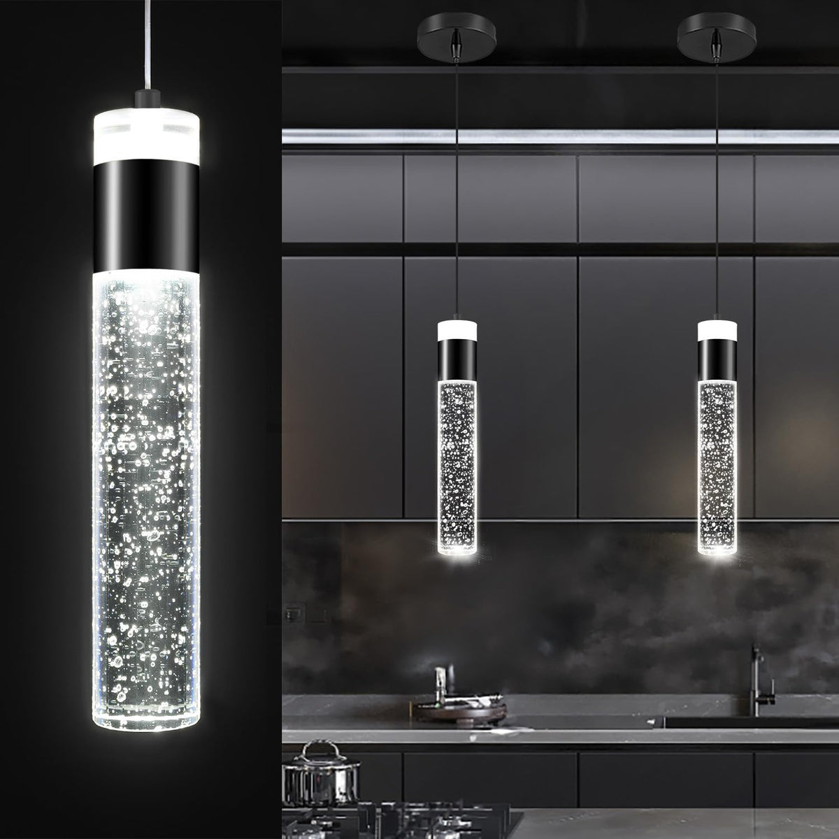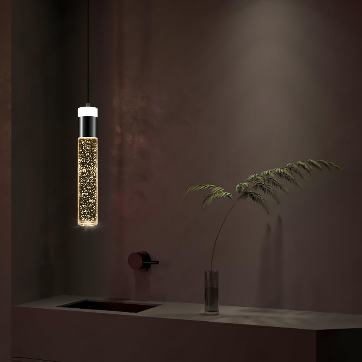 Modern Mini Crystal Pendant Light For Kitchen Island Bedroom Bedside Hanging Ceiling Lamp With Crystal Bubble Column, Led Dimmable 3000K-6000K Independent 1-Light Black