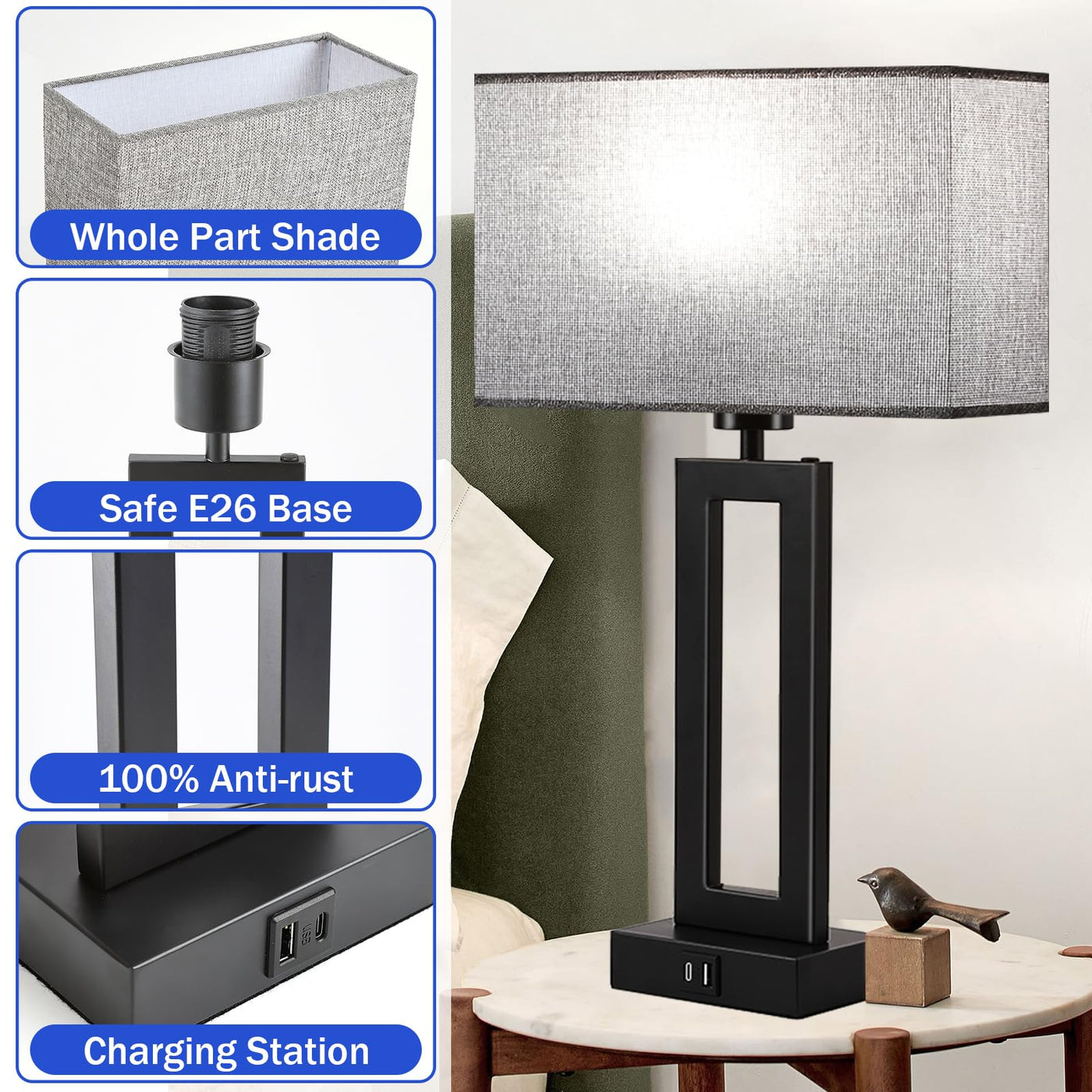 Modern Nightstand Lamps Set Of 2 - Touch Control Bedside Table Lamps With Usb C&A, 3 Way Dimmable For Bedrooms & Living Room, Gr