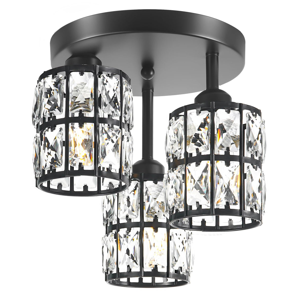 Modern Semi Flush Mount Ceiling Light, 3-Light Black Crystal Close To Ceiling Light Fixtures, Kitchen Light Fixtures With Clear