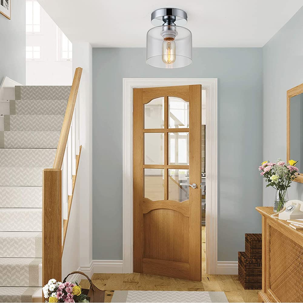 Product Description Industrial Rustic Semi Flush Mount Ceiling Light, Chrome Ceiling Lamp Light Fixture, Perfect For Your Bar, Hallway, Kitchen, Office, Foyer, Dining Room, Living Room, Bedroom, Entryway, Stairway, Farmhouse, Etc.
