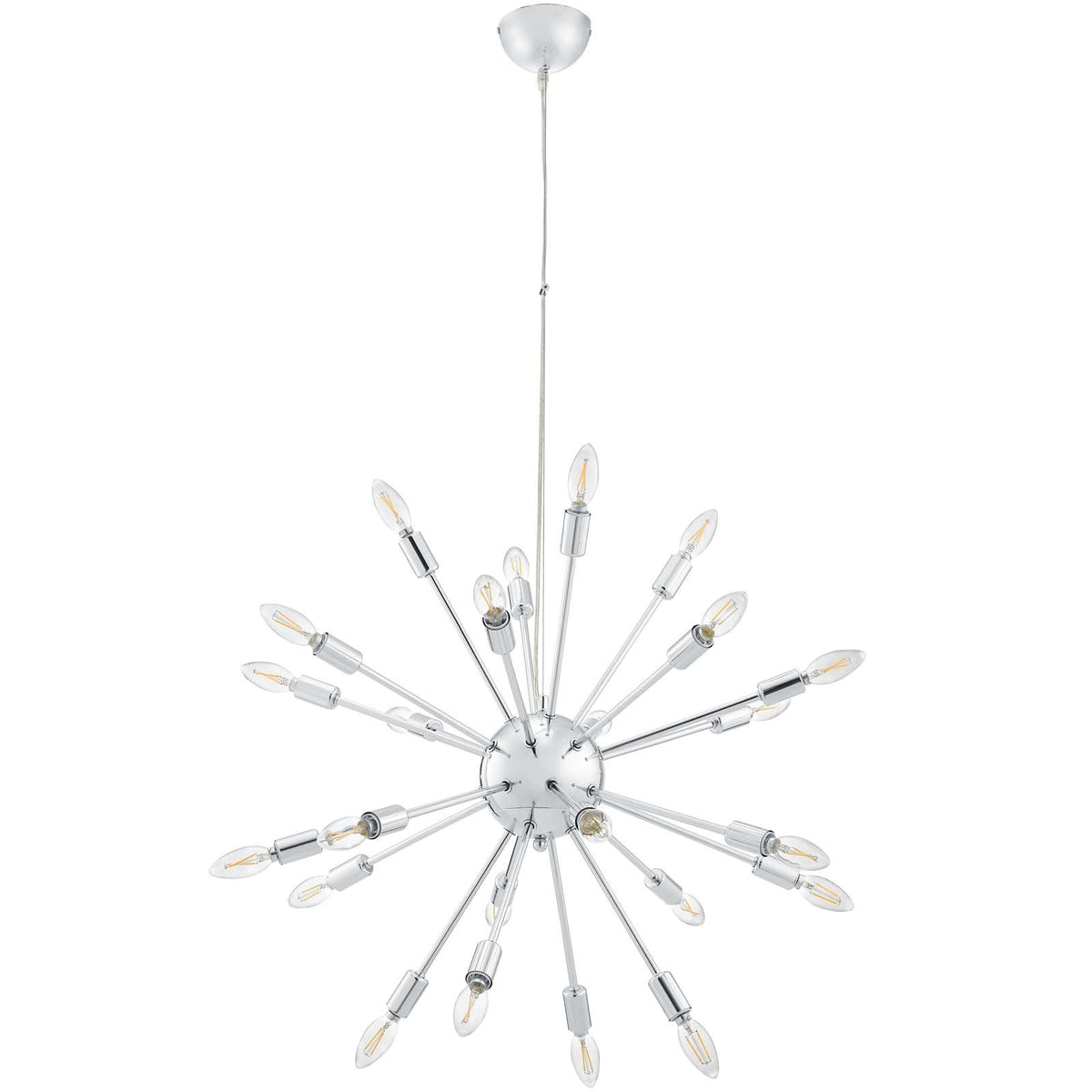 Center your focus with a blaze of light designed to illuminate spacious rooms and event areas. Whether you create a festive atmosphere with colorful or classic white bulbs, gamut brightens every corner in this contemporary chandelier brimming with endless possibilities. The chrome-plated steel base lends additional shine and sparkle to this eye-catching ceiling fixture. Cord adjusts from 23.5 to 31.5 . set includes: one - gamut chandelier product dimensions: overall product dimensions: 29 inch L x 29 inch W x 39.5 inch h