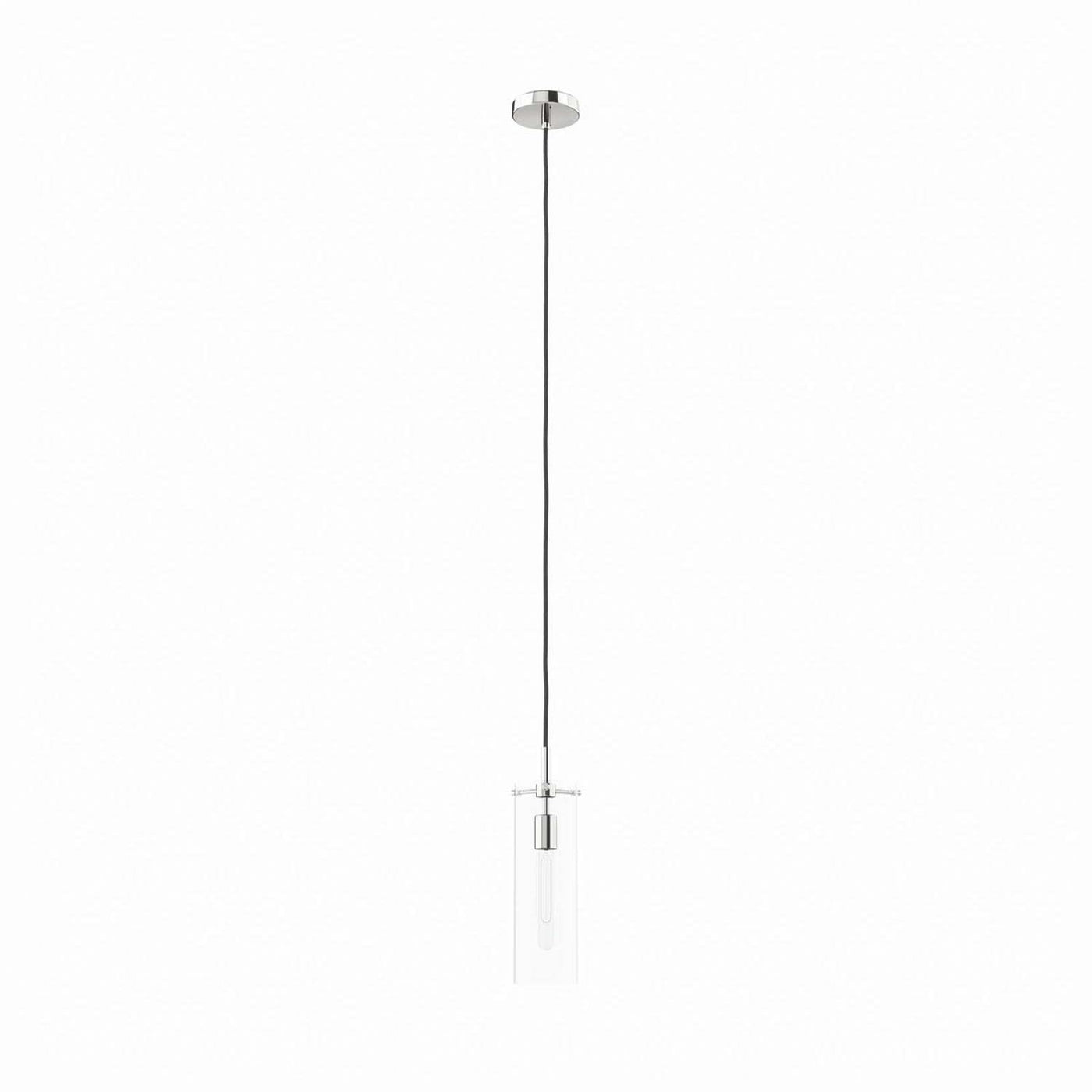 Cover your walls with ambient light with the Skylark 1-Light Pendant Light. A modern update to the dining room, kitchen, entryway, hallway, bedroom, bathroom, or other living space, this hanging light features a single bulb encased in a clear glass cylinder shade. Compatible with sloped ceilings, this pendant light is suspended by a ceiling canopy and an adjustable fabric cable to accomodate a range of ceiling heights. This light fixture requires one E26 bulb 60W max or LED equivalent (not included). This pendant light is damp rated for use in the bathroom. Professional installation required. Set Includes: One - Skylark Pendant Light Product Dimensions: Overall Product Dimensions: 5"L x 5"W x 72"H Shade Dimensions: 4.5"W x 13.5"H