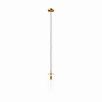 Q: What materials are used in the construction of the Skylark Pendant Light?A: The Skylark Pendant Light is constructed with a clear glass cylinder shade and a satin brass finish, providing a modern and elegant aesthetic.