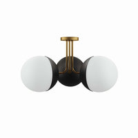 Cast a warm, ambient glow around your home or apartment with the Stellar 3-Light Semi-Flush Ceiling Light. Adding contemporary charm to a kitchen, dining room, bedroom, office, hallway, entryway, or other living space, this spherical light fixture features frosted glass shades that attach to matte black metal bases. Suspended by a semi-flush mount ceiling canopy, the lights on this pendant are affixed with sleek metal arms. This ceiling light requires three E26 bulbs 60W max or LED equivalent (not included). Damp rated for use in the bathroom. Professional installation required. Set Includes: One - Stellar 3-Light Semi-Flush Ceiling Light Product Dimensions: Overall Product Dimensions: 21"L x 21"W x 11"H Shade Dimensions: 7"W x 7"H Base Dimensions: 4.5"L x 4.5"W