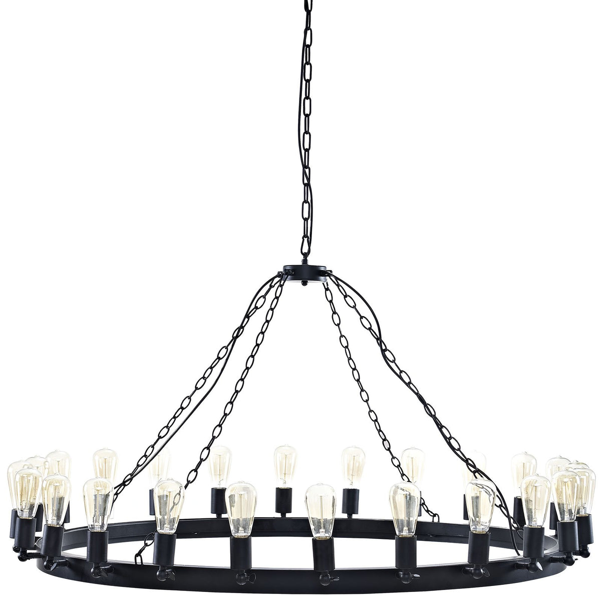 Transform your room with a launch pad of experience. The teleport chandelier series is supported by four adjustable steel chains, adorned with a magnificent array of twenty four bulbs, and was designed to touch down for landing when desired with 180 degree up-down adjustable bulb holders. Transport your decor while dining amongst friends in this series perfect for industrial, ranch, Vintage modern, contemporary and other transitional decors. Set includes: one - teleport chandelier product dimensions: overall product dimensions: 52l x 52w x 67h ceiling to the bottom of the chandelier: 67h length of cord:: 34h.