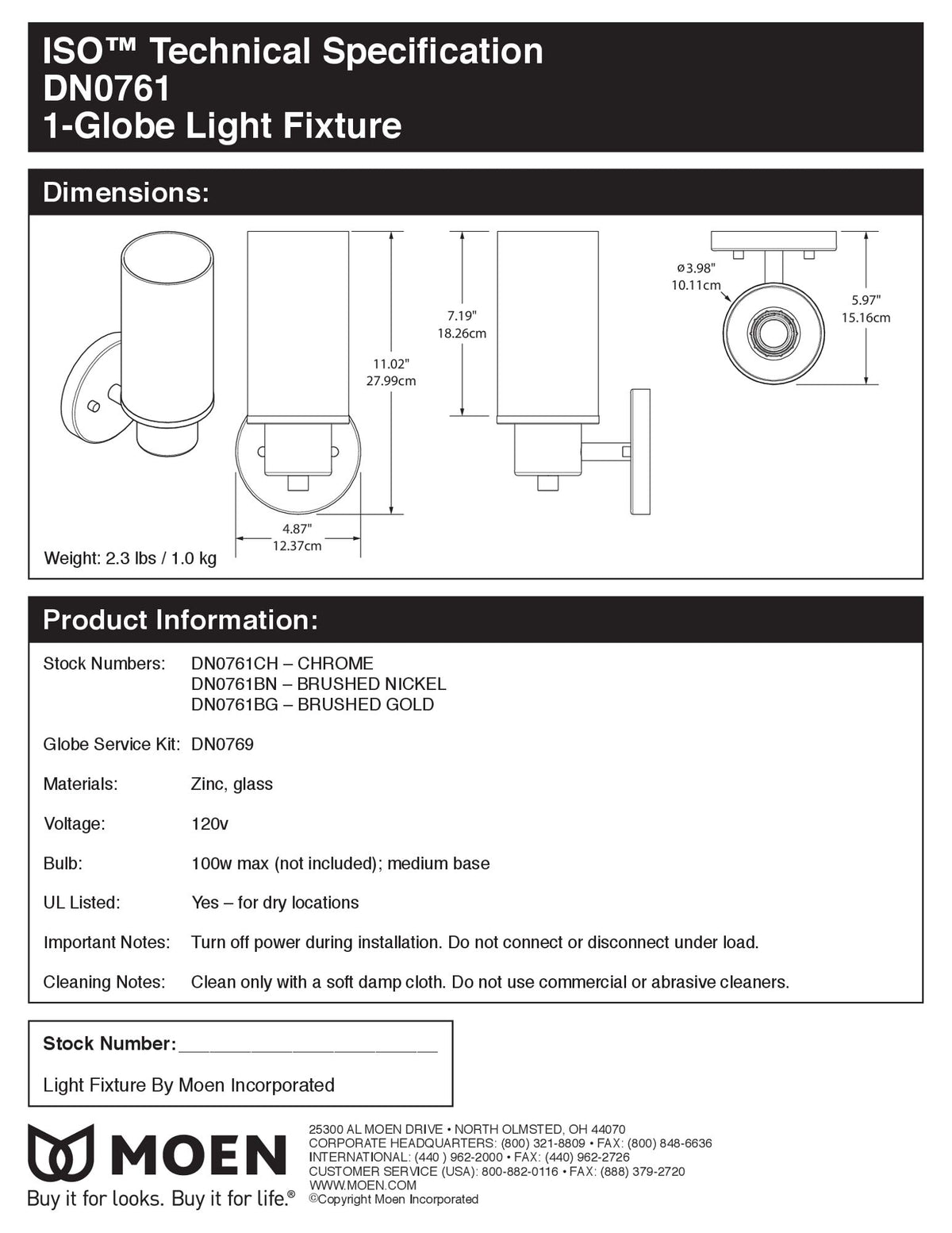 Moen Dn0761Bg Iso 1-Light Dual-Mount Bath Bathroom Vanity Fixture With Frosted Glass, Brushed Gold
