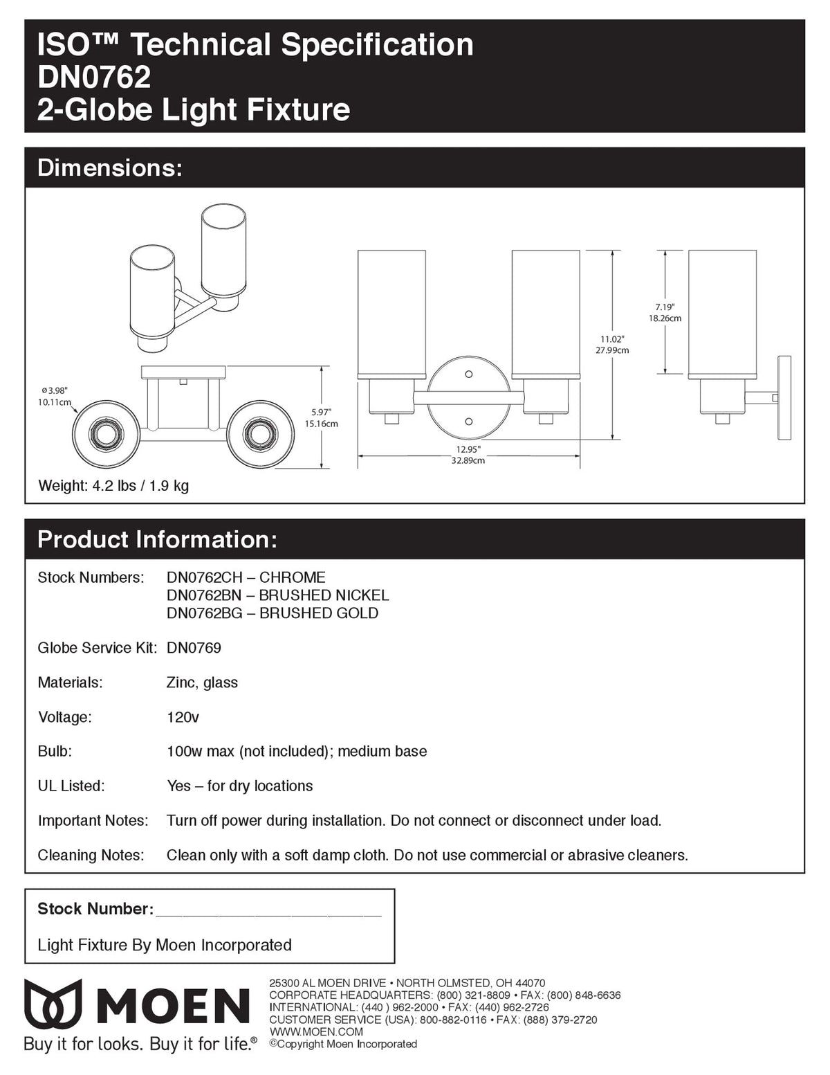 Moen Dn0762Bl Iso 2-Light Dual-Mount Bath Bathroom Vanity Fixture With Frosted Glass, Matte Black