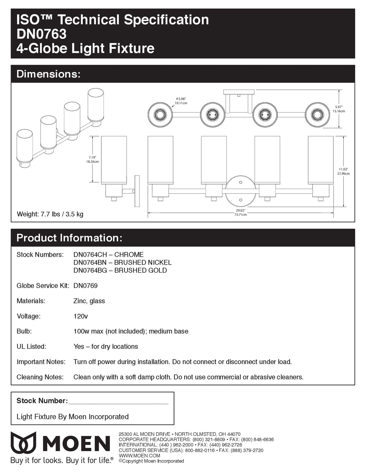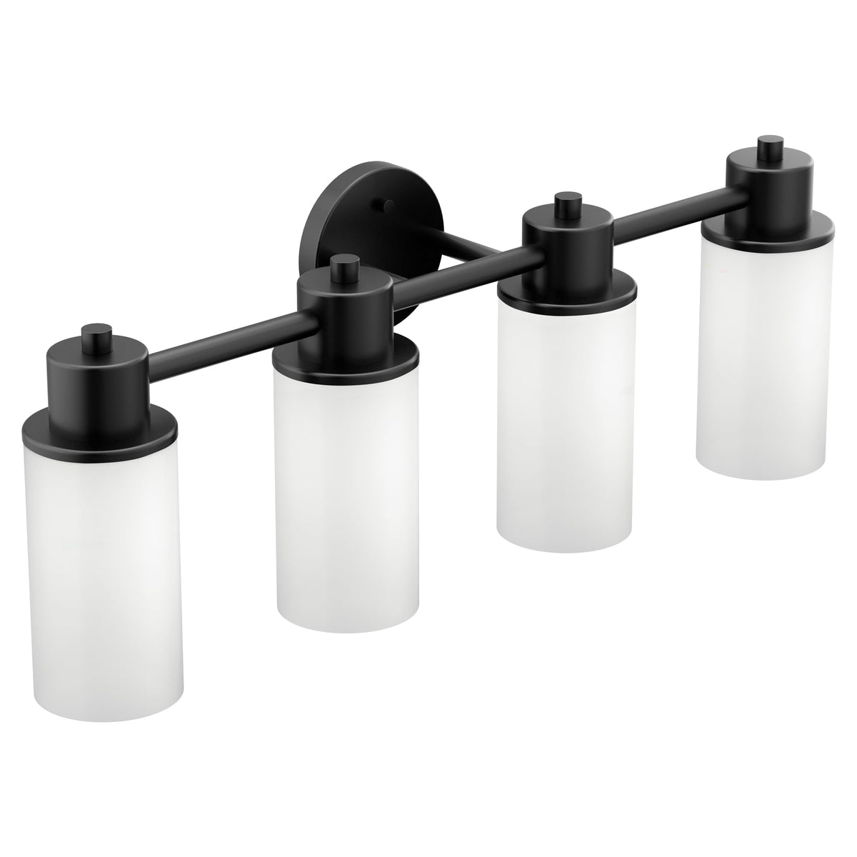 Moen Dn0764Bl Iso 4-Light Dual-Mount Bath Bathroom Vanity Fixture With Frosted Glass, Matte Black