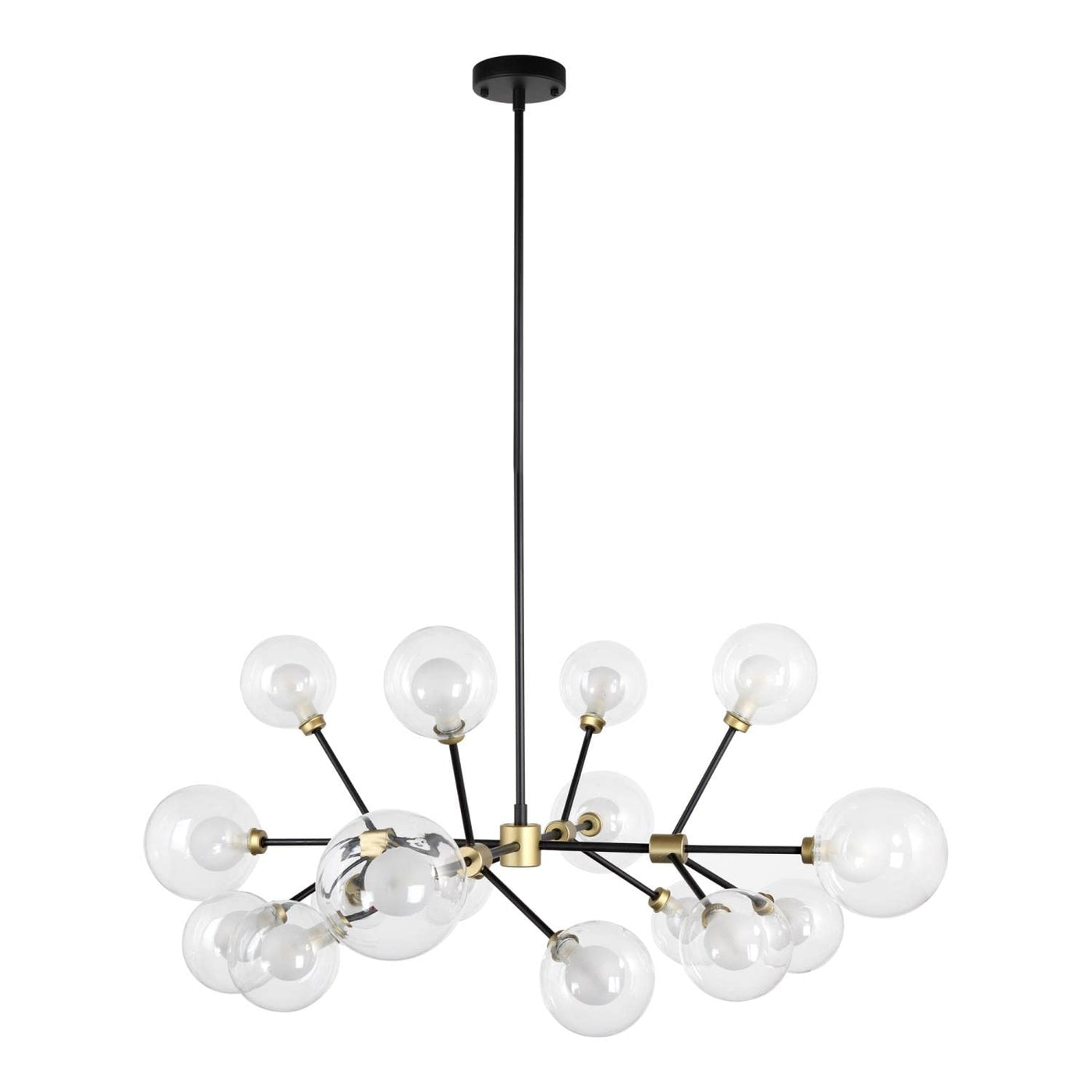 Our Andromeda Pendant Light is as dazzling and complex as the galaxy itself. Fifteen lightbulbs encased in delicate glass orbs extend from sleek, sturdy iron rods. Works as both a light fixture and an art installation. SpecificationsMaterial: Iron, glassDimension: 38Ǒ" W x 38Ǒ" D x 21" HWeight: 19 lbs