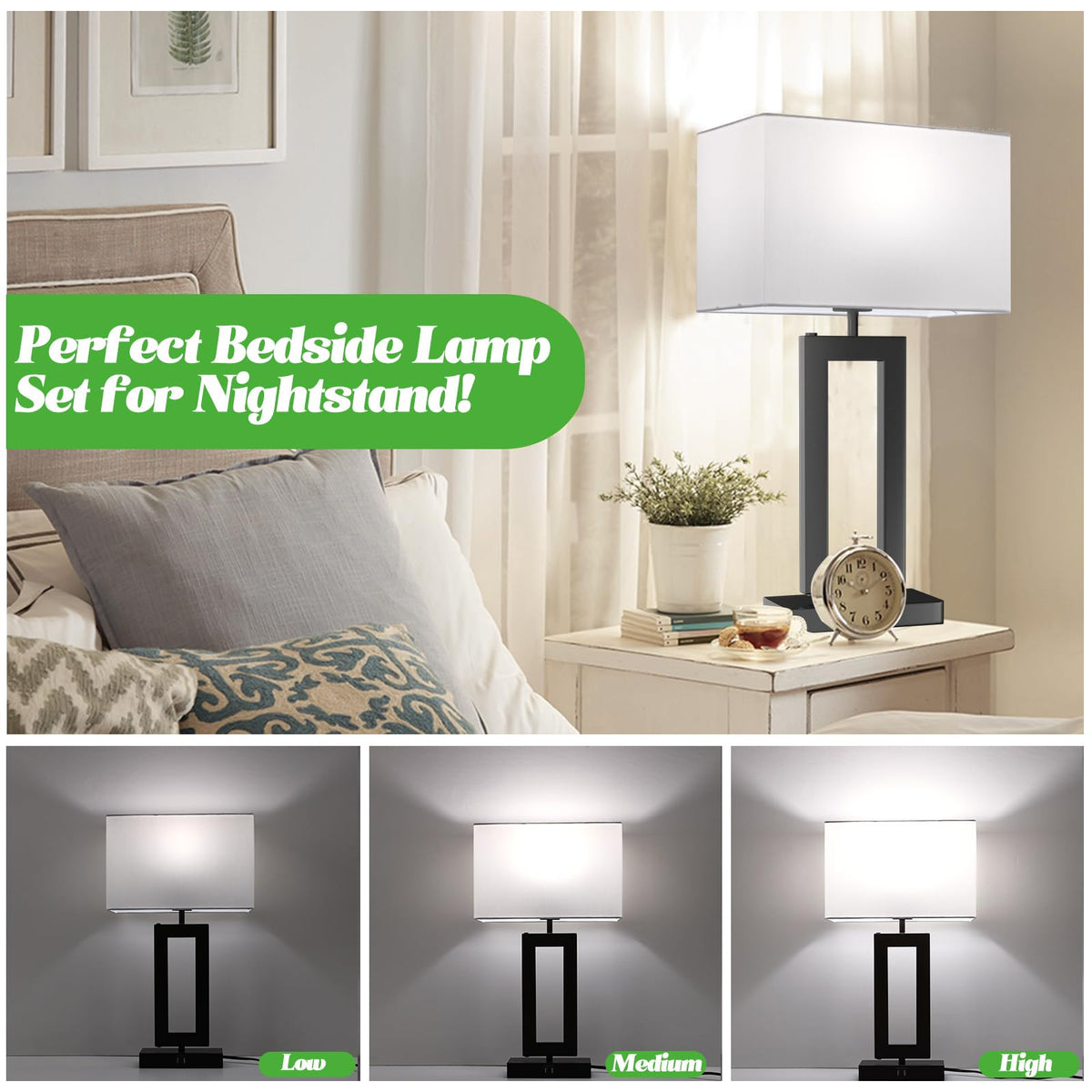 Momyofdy White& Black Table Lamp Set Of 2 Touch Control Lamps 3-Way Dimmable Bedroom Bedside Nightstand Lamps W/Usb Ports Modern
