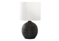 Freshen up your decor with this stylish and trendy 16"h table lamp with a beehive design textured finish base in black resin and topped with an ivory fabric shade. The easy to use on/off rotary switch holds up to a 60W bulb (not included), perfect for brightening up a living room, bedroom, or office. Made with top quality materials, this contemporary lighting piece includes a 2 year limited warranty against any defects for your peace of mind. Quick and easy to assemble, place this lighting accent on an end or side table, nightstand or bedside table and create some ambiance. Use it as a chic desk lamp to illuminate a space, the possibilities are endless for this versatile and functional decorative accent.