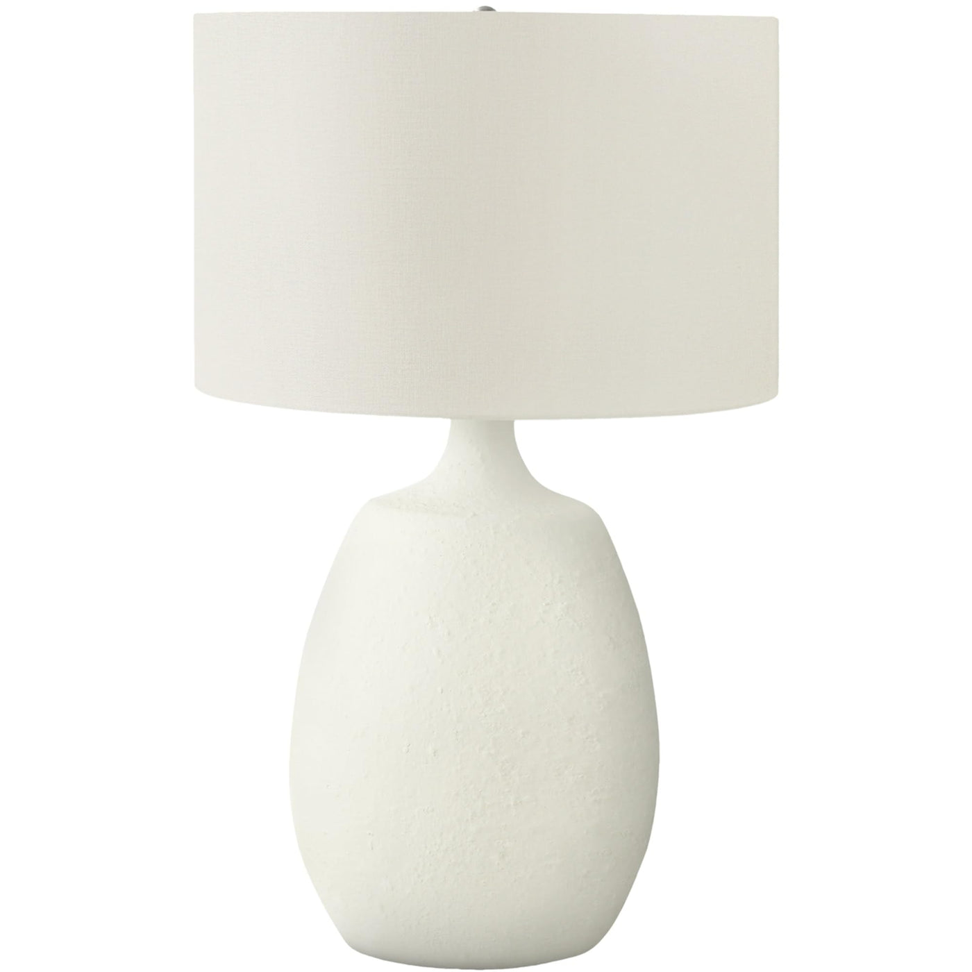 Light up your home, office, or living room space with this stylish and fashionable 26 h table lamp! The sleek, contemporary design features a textured cream resin base and a chic linen ivory shade for an elegant touch. The 3-way switch allows you to illuminate your space to whatever ambiance suits your needs with a maximum output of 100W (bulb not included). With a 6 foot long cord, this table lamp adds a unique and practical accent whether you place it on a end or side table or on your nightstand for a modern decorative lighting solution. Made with quality materials, this lamp comes with a 2 year limited warranty against manufacturer s defects for a worry-free purchase.