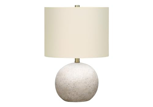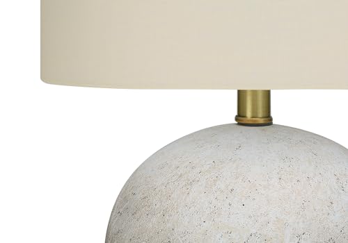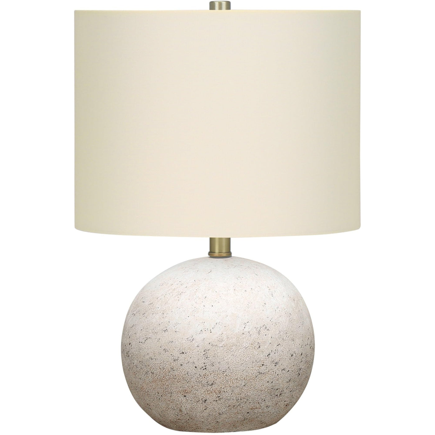 This stylish and fashionable 20"h sphere shaped table lamp with a grey concrete base in a textured finish, and topped with an ivory linen drum shade and gold metal finial will be a standout accent to brighten any room. Featuring a 3-way rotary switch holding a single bulb (not included) with a maximum outage of 100W/120V, allows you to customize the ambiance in your living room, home office, or bedroom. With a chic contemporary appeal and attached with a 5ft clear cord, place this versatile decorative lamp on a side or end table, or on your nightstand or bedside table to create a warm and inviting atmosphere. Made with durable quality materials ensuring longevity, this lamp includes a 2 year limited warranty against any manufacturer s defects for a worry-free purchase.