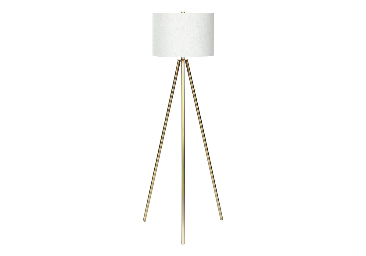 Illuminate your space with the perfect combination of classic style and contemporary flair with this 63"h floor lamp! The simple tripod design keeps the lamp stable while the brass metal base and ivory linen drum shade ensure a timeless, elegant look. The 3-way switch holds a single bulb (not included) for a maximum output of 100W/120V, allowing you to adjust the amount of light needed to create an intimate atmosphere or brighten up a dark room. With a 6ft clear cord discreetly attached to one of the legs at the bottom, place this versatile lamp next to a sofa or armchair in a livingroom or office, or bring it into your bedroom for a practical lighting option. Made with durable quality materials ensuring longevity, this lamp includes a 2 year limited warranty against any manufacturer s defects for a worry-free purchase.