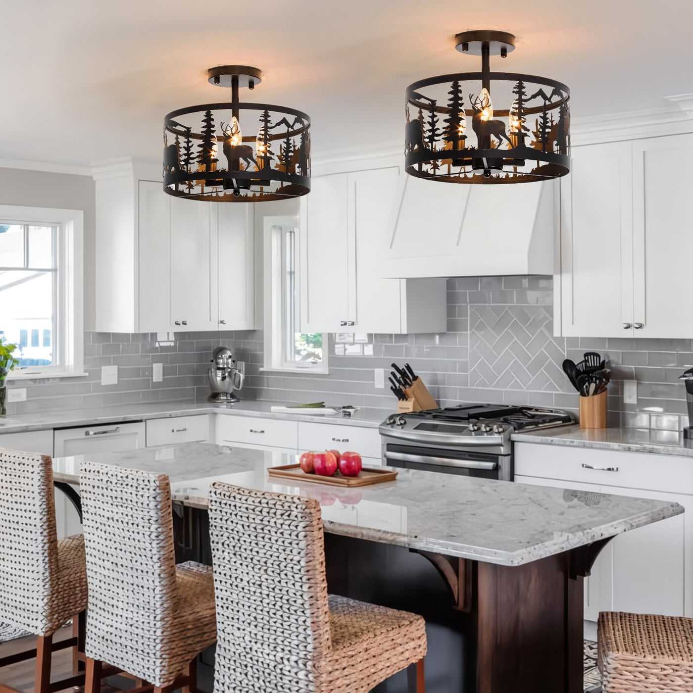 - **Rustic Elegance Design**: Crafted from durable metal with a sleek black corrosion-resistant finish, this ceiling light features a unique deer bear tree design that brings sophistication and charm to your home.