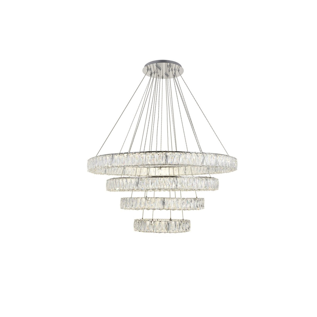 Q: How does the Elegant Lighting Monroe Chandelier compare to other chandeliers?A: The Monroe Chandelier stands out with its contemporary design, featuring a unique oblong shape and sparkling royal-cut crystals, making it a striking choice.