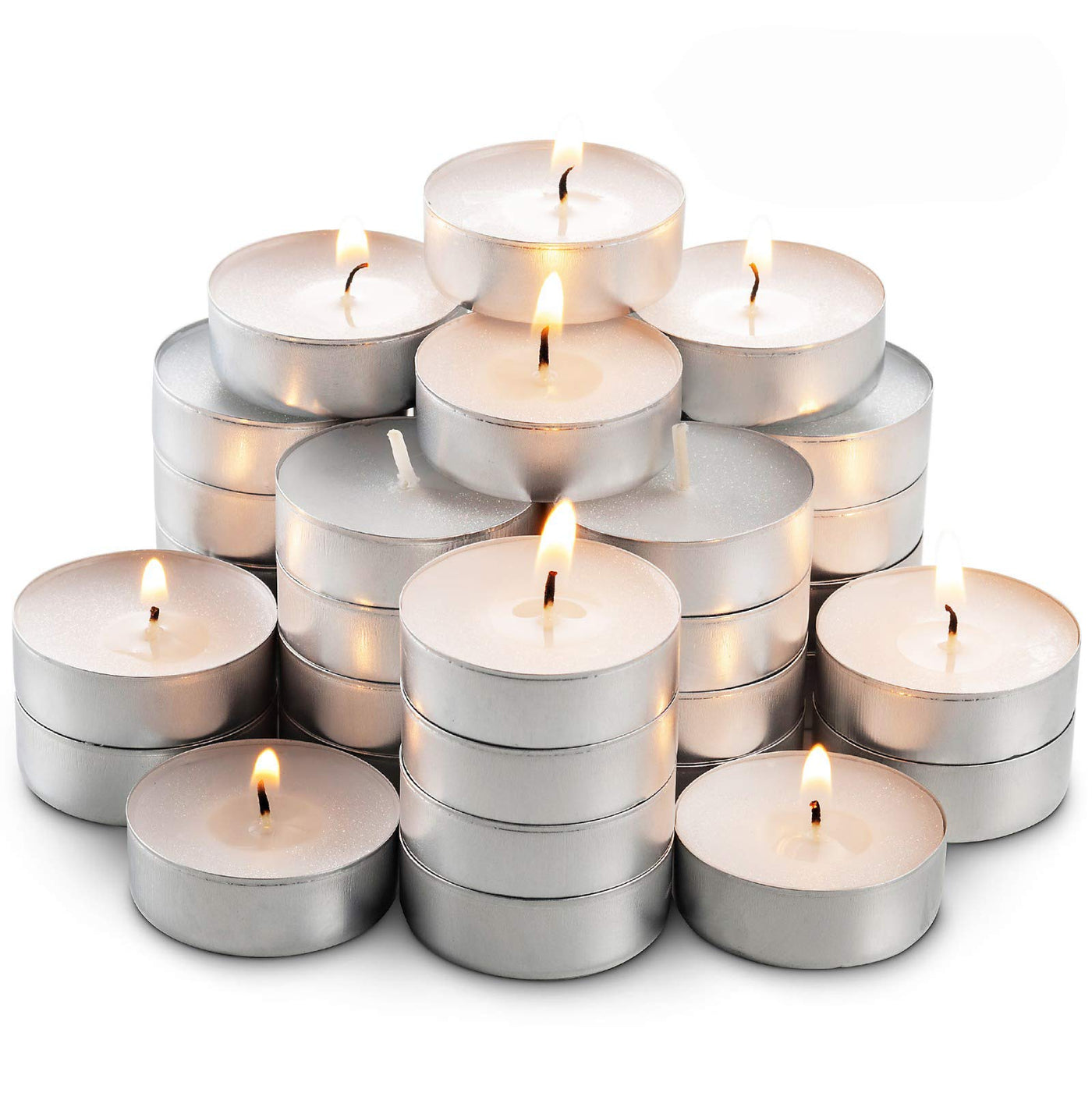 Q: How long do MontoPack unscented tea light candles burn?A: MontoPack unscented tea light candles provide a long-lasting burn time of up to 4 continuous hours, making them ideal for extended use during events or romantic evenings.