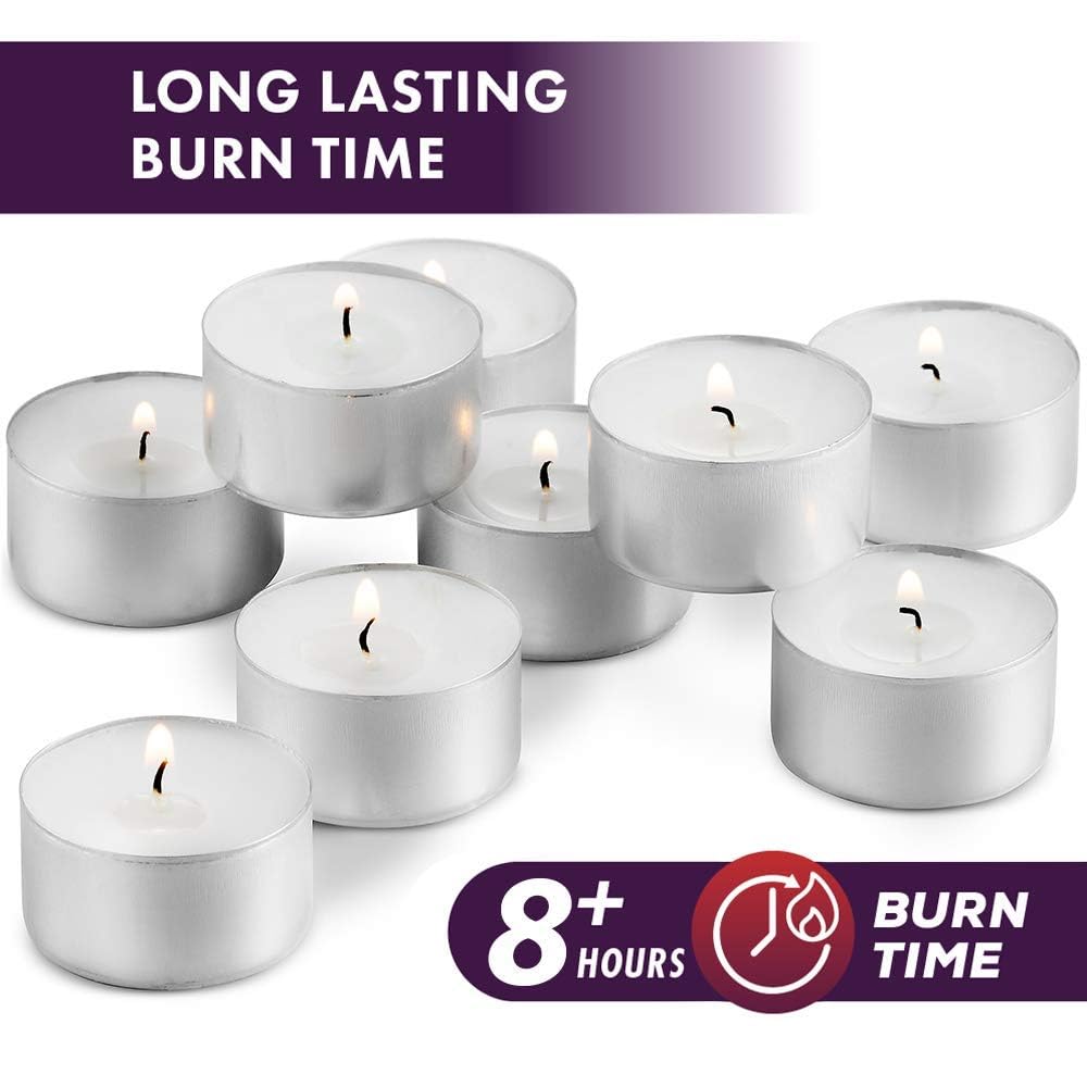 MontoPack Unscented White Tealight Candles Bulk | 8 Hours of Smokeless, Dripless, Long Lasting Burning Paraffin Tea Lights | Small Votive Mini Candles for Home, Shabbat, Weddings & Emergencies