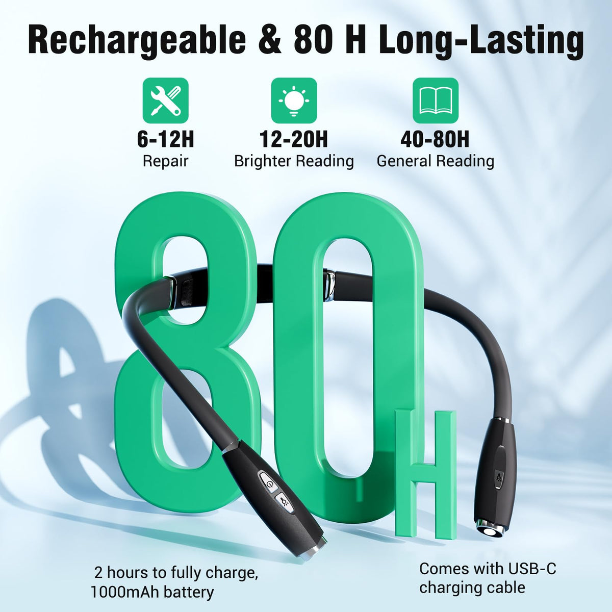 Mood Pie Rechargeable Neck Reading Light, Book Light For Reading In Bed At Night, Led Reading Lamp With 3 Brightness Levels, Por