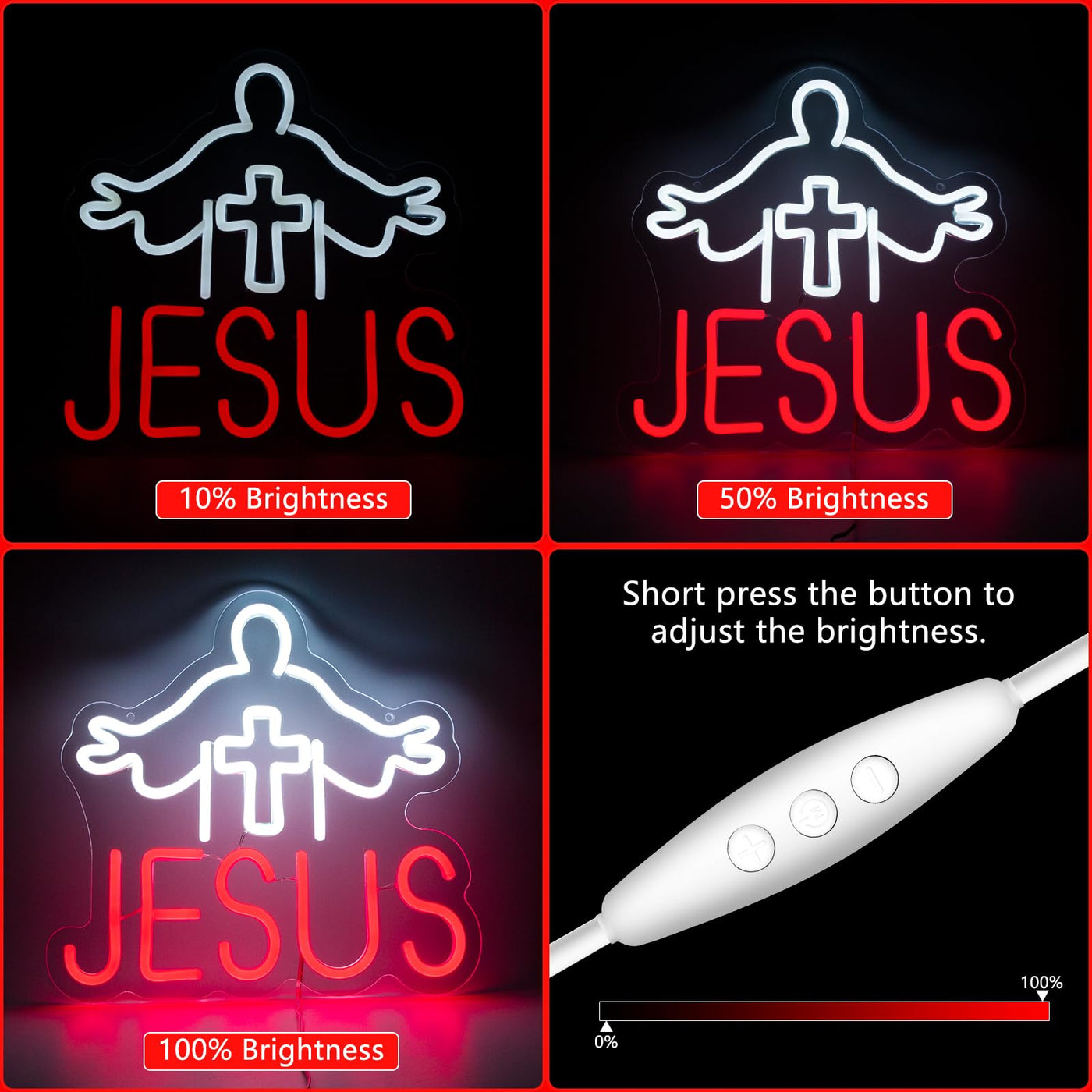 Moodlion Cross Jesus Christmas Neon Sign For Wall Decor Studio Room Led Lights, Jesus Saves Decor Neon Signs Aesthetic Operated