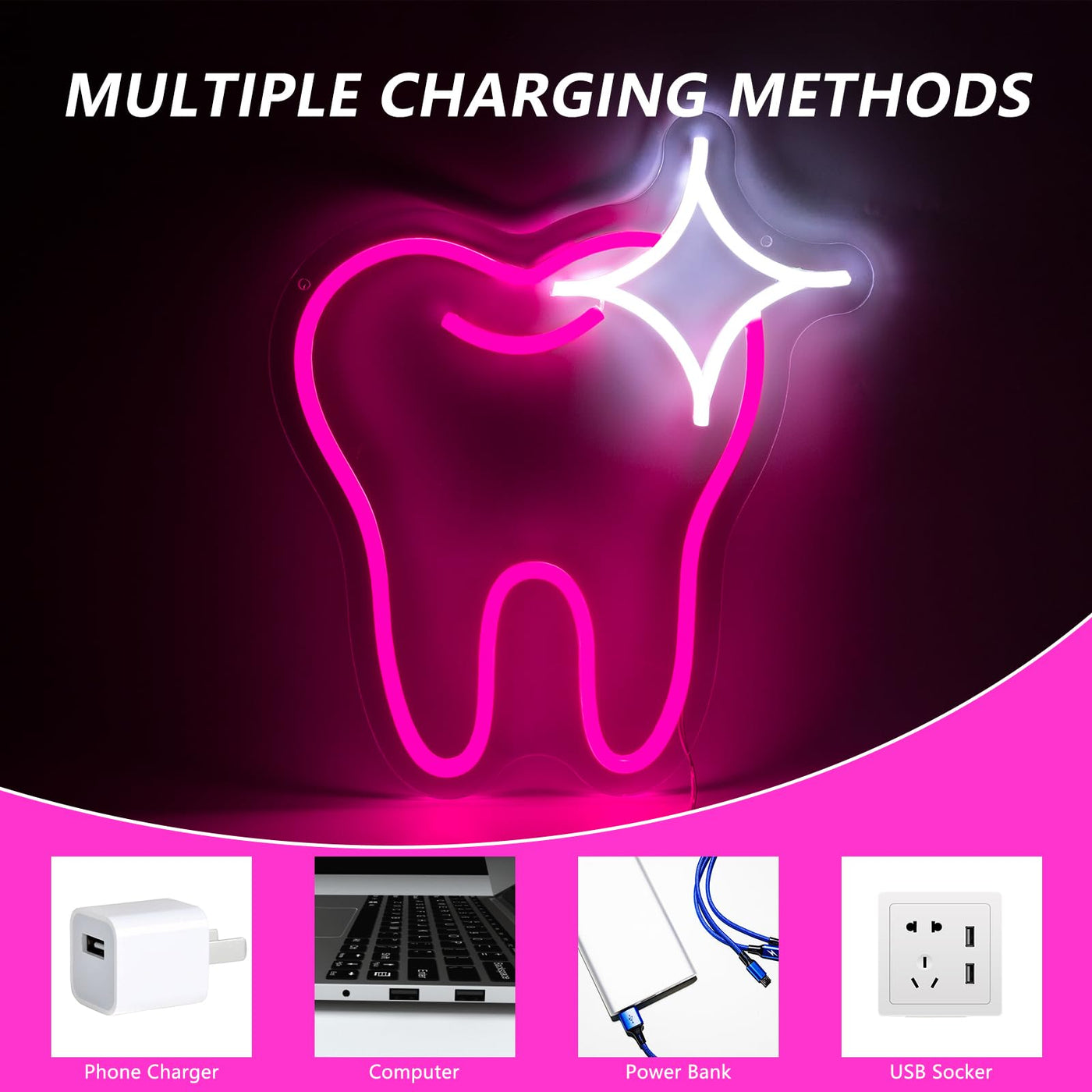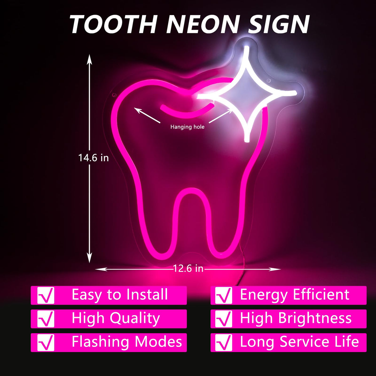 Moodlion Neon Sign Pink Tooth Decor Dental Office Light up Assistant Accessories Decoration, LED Neon Signs Smile Wall Art, Neon