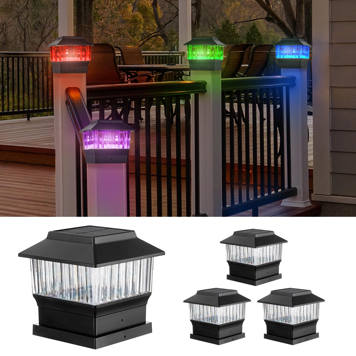 Moon-De-Age Rgbw Solar Post Cap Lights, 50 Lumen, 4 Pack For Fence & Garden - Black