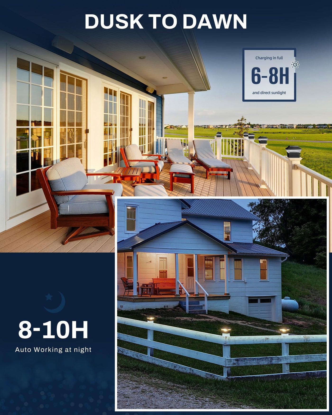 MOON-DE-AGE Solar Post Cap Lights, 4x4 4x6 Fence Post Light Solar Powered, 25 Lumens Deck Post Light Outdoor, 3000K Warm Light,