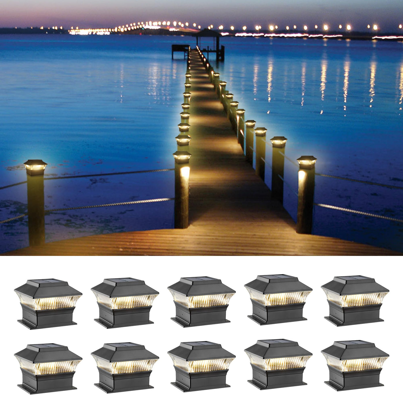 Moon-De-Age Solar Powered Fence Lights, 4X4/4X6 Post Cap, 10 Pack, 25 Lum
