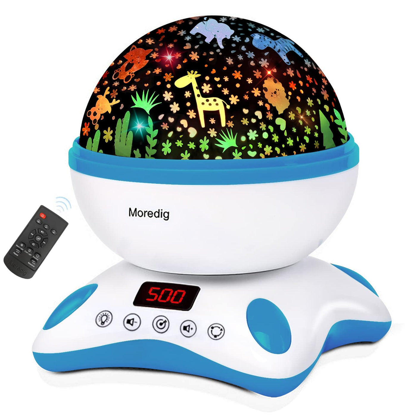 Moredig Kids Night Light Projector - 12 Music Modes, Timer, 18 Lights, Blue, Gift For Kids