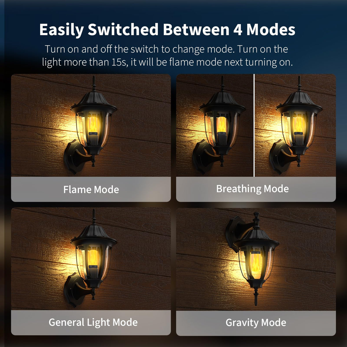 For optimal flame flickering effects, we recommend installing the bulbs in frosted glass shades or similar fixtures.