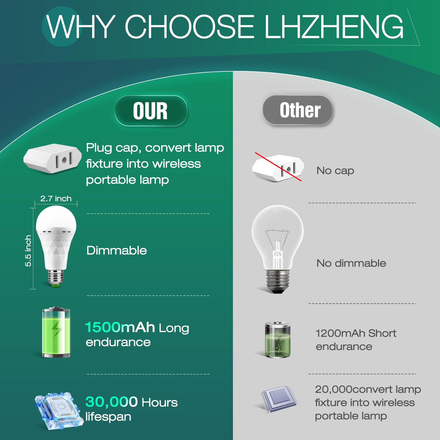 Moslian Emergency-Rechargeable Light Bulb With Hook,Stay Lights Up When Power Failure, 1500Mah 12W 60W Equivalent Led Light Bulb