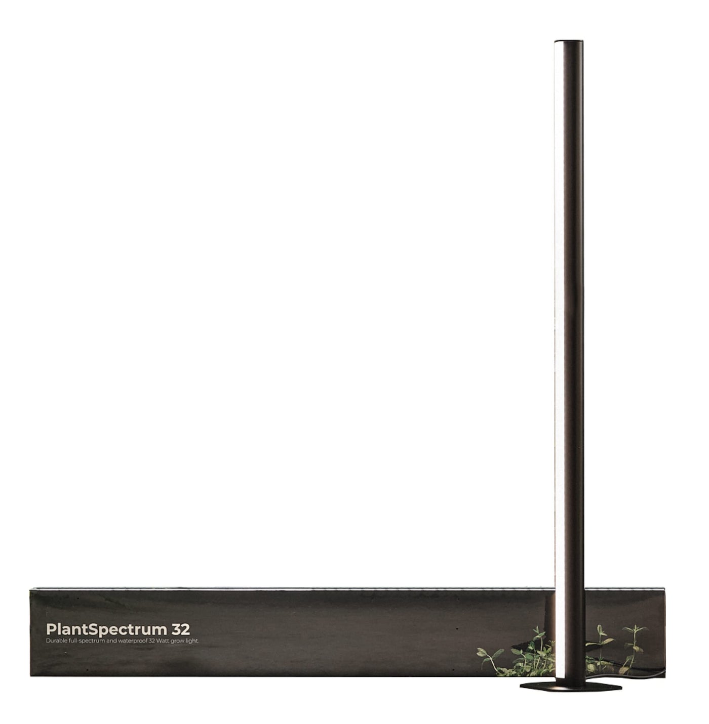 PlantSpectrum is a professional and ultra-durable water proof grow light. Mount this grow light easily in a rack, it is perfect to grow your crops in your farm. Also included is a disc to maintain large houseplants with a vertical setup. Color Rendering Index: CRI: 96 PAR (Photosyntetic Active Radiation): 92% Human Eye Light Intensity Flux: 2495lm Correlated Color Temperature: CCT=3914K PPFD (Photosynthetic Photon Flux Density): 5cm: 332 µm/m2/s In the box: Grow light, Rack mounts with 2x zip ties, Standing mount, International adapter, 2x M4 hex screws, 1 hex L-key tool
