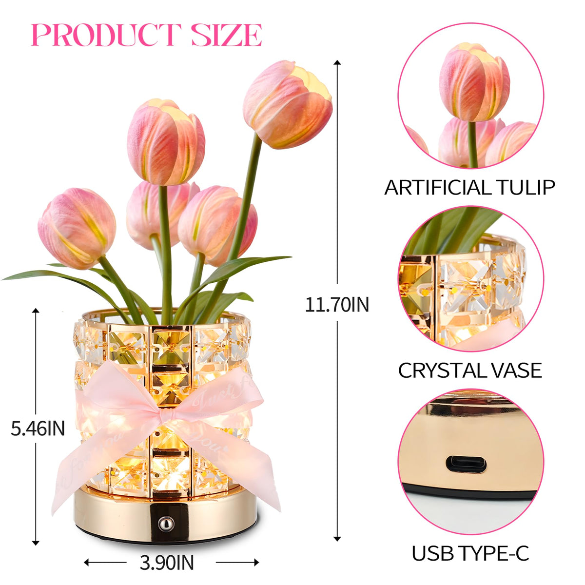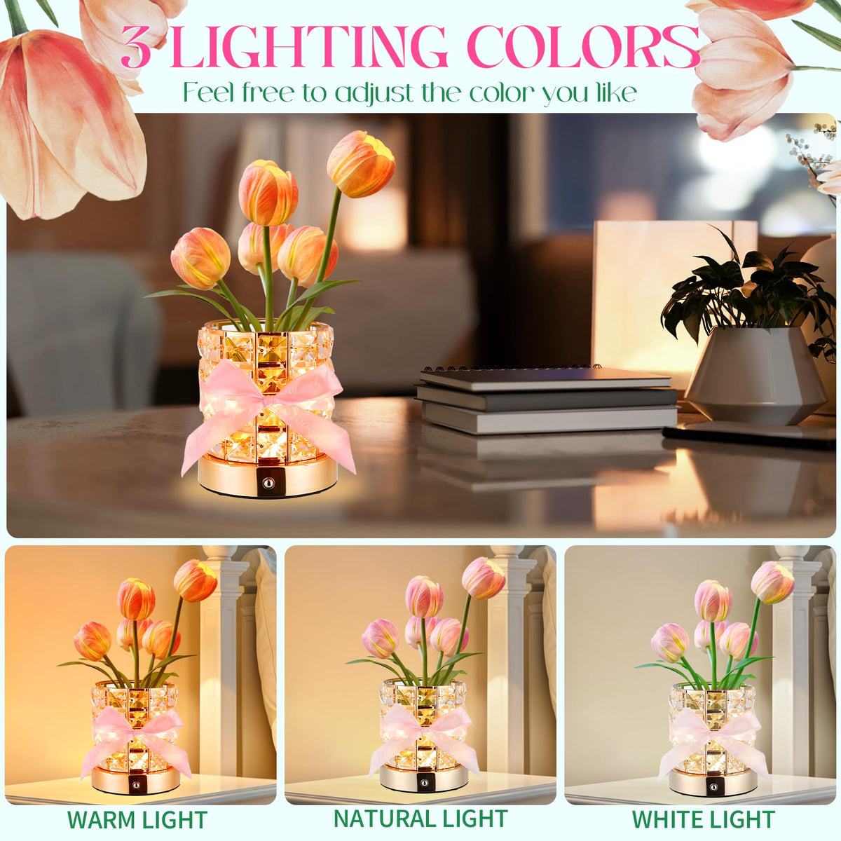 Mothers Day Gifts For For Mom/Birthday Gifts For Women, Flower Lamp Cordless Night Light Dimmable, Crystal Base With Usb Charge