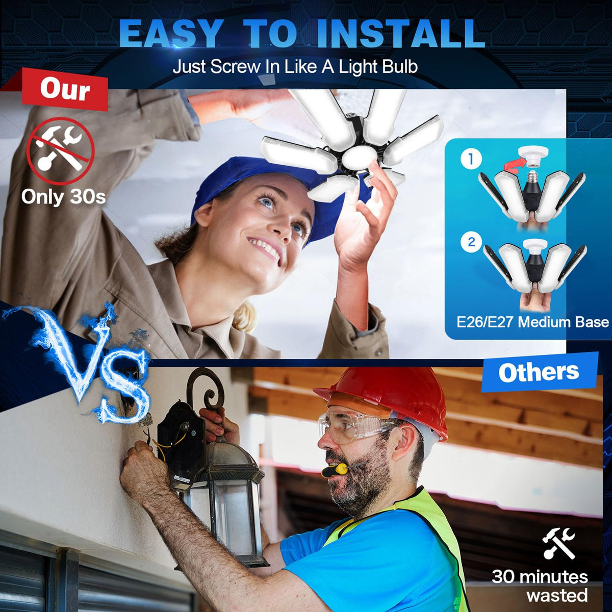Q: Can I install the Motion Sensor Garage Light myself?A: Yes, the Motion Sensor Garage Light is designed for easy installation. You can simply screw it into a standard E26/E27 base, just like a regular light bulb, making it a plug-and-play solution.