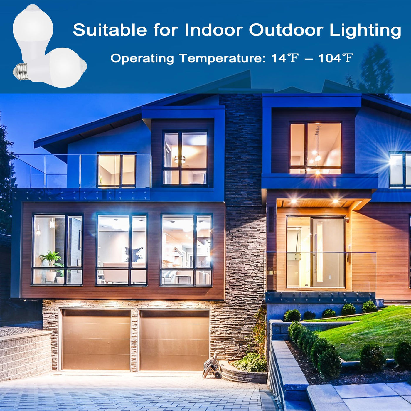 Q: What is the lifespan of these motion sensor light bulbs?A: The Motion Sensor Light Bulbs have a lifespan of approximately 25,000 hours, making them a long-lasting option for both indoor and outdoor lighting needs.