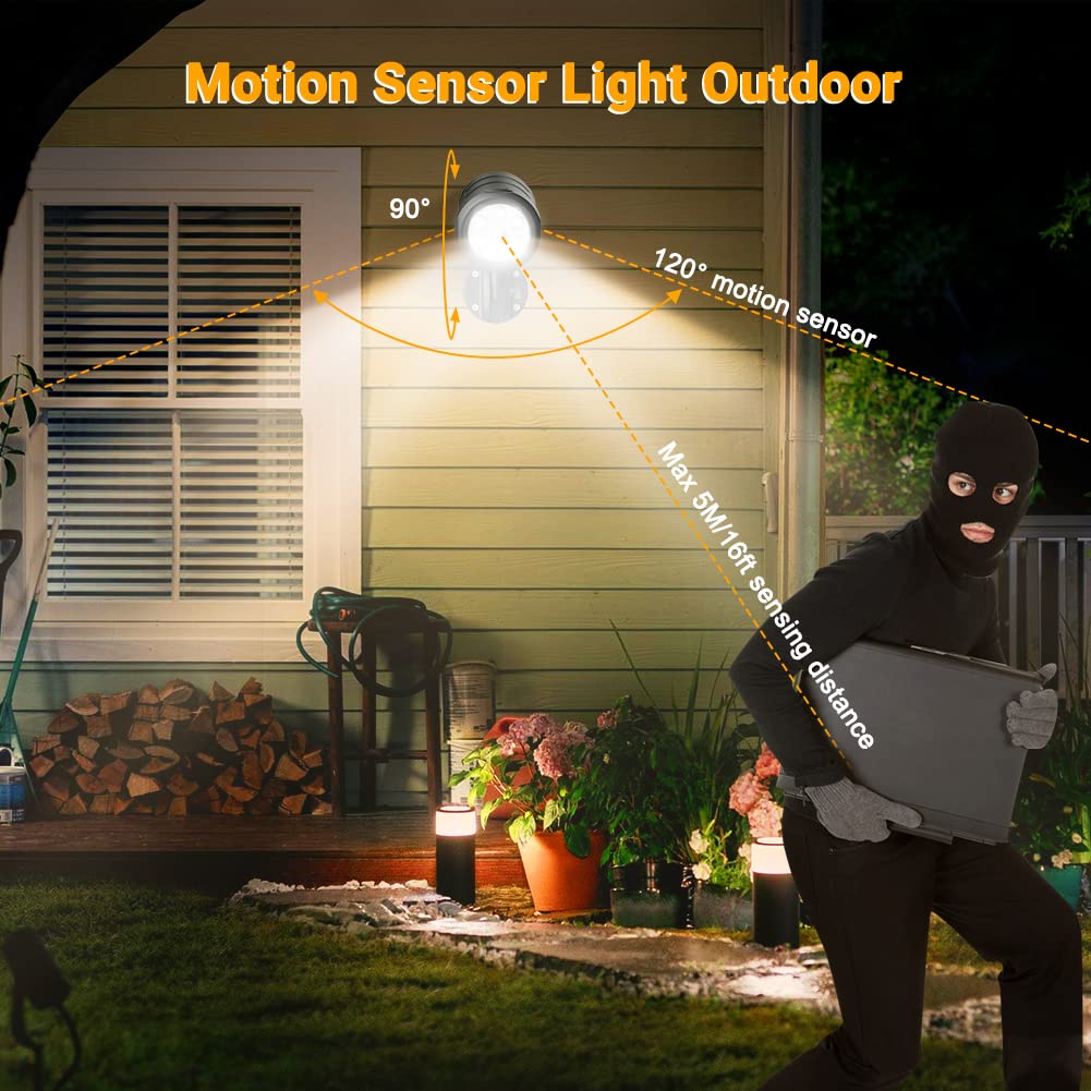 Motion Sensor Light: Sensor: Light and Human Sensing Sensing Distance: Max 5M/16ft. (normally about 3 meters) Sensing Angle: horizontal 120°, vertical 90°. Induction Delay: 20s