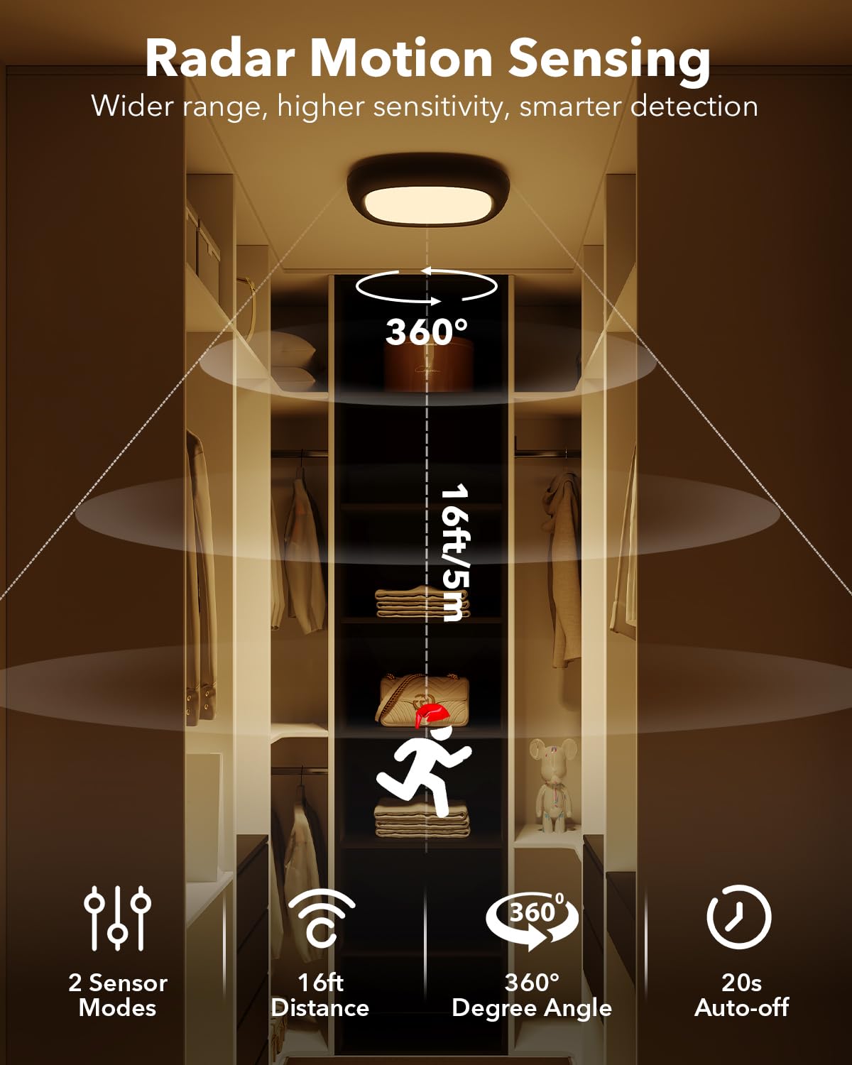 Motion Sensor Rechargeable Ceiling Light With Remote, Ip54 Waterproof 12000Mah Wireless Shower Light, Battery Operated Closet Li