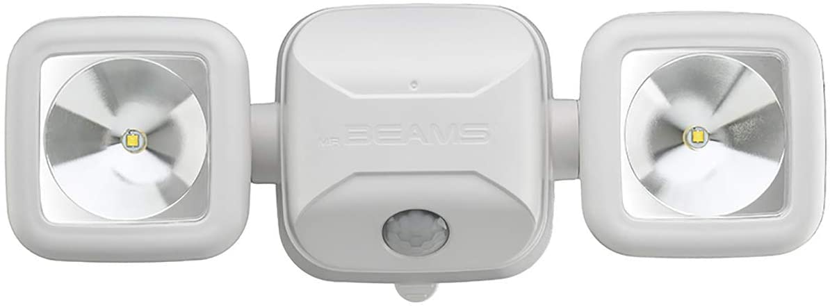 Mr Beams MB3000 Wireless LED Dual Head Security Spotlight, 500 Lumen, Motion Sensing, Battery Powered, White, 1-Pack
