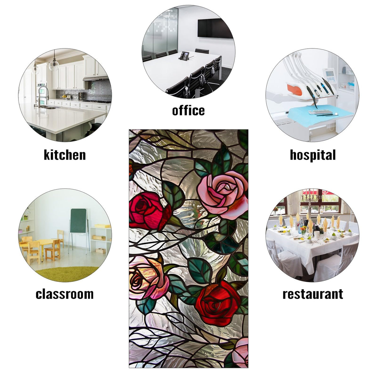 Msinmkok Fluorescent Light Covers For Ceiling Lights Classroom Office 4X2Ft Stained Glass Pink Roses Decorative Drop Ceiling Lig