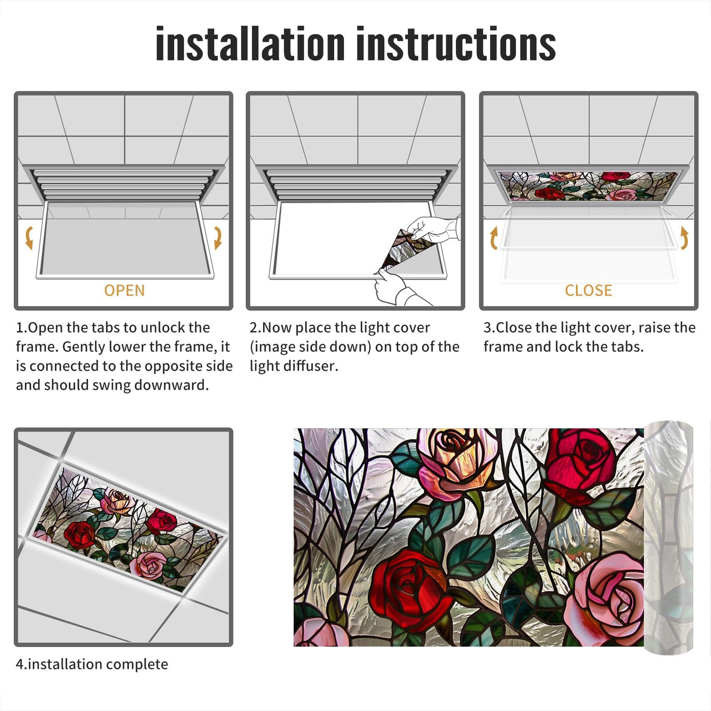 Msinmkok Fluorescent Light Covers For Classroom Office. Size:2X4 Feet(47.2X23.6In/120X60Cm).Standard 2X4 Ft Size Can Fit The Drop Ceiling Fluorescent Light. Material:Flexible Pet Material.Lightweight Eco-Friendly. Fluorescent Light Covers Features: 1.Eliminate Harsh Glare Causing Eyestrain And Headaches,Improve Your Mood And Health.Reduce Harmful Light. 2.Improved Focus.Harsh Fluorescent Lighting Can Negatively Affect A Student'S Ability To Focus And Stay On Task.Make People Focus On Study And Work After Installing The Light Covers. 3.Diffuse And Soften Fluorescent Light.Creating A Relaxing Environment Convenient And Affordable. 4.Easy To Install(No Tools Required):Open The Led Light Fixture Board.Place The Light Cover (Image Side Down) On Top Of The Hard Light Diffuser.Then Reinstall The Fixture Back To The Ceiling. 5.Please Note:Not A Replacement For Your Light Diffuser. 6.Suitable For Most Room,Such As Office,Classroom,Hostpital,Library,Clinics,Playroom,Nursery,Kindergarten,Shop,School,Hotel,Bar,Night Club And So On. Package: Packed In A Tube.