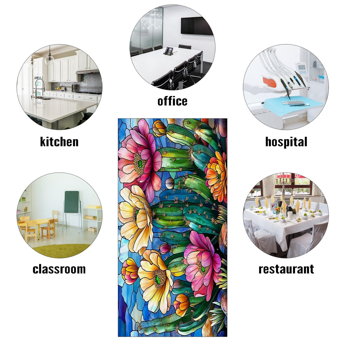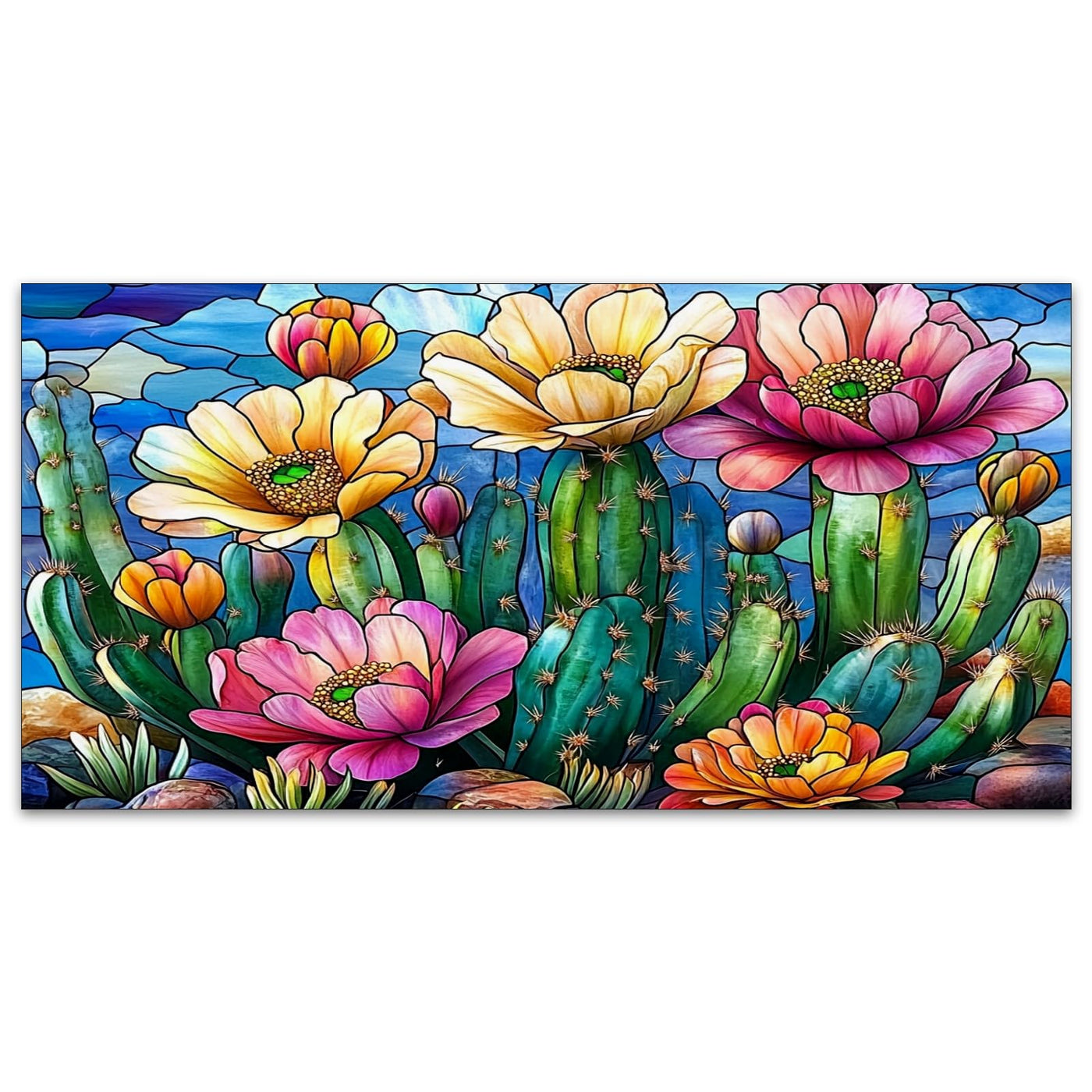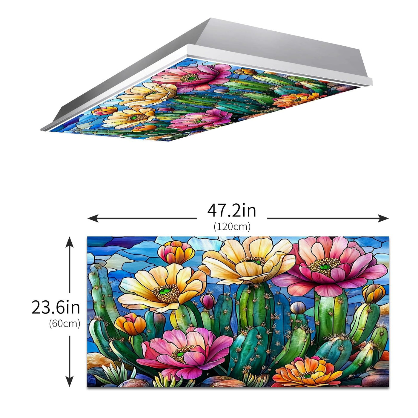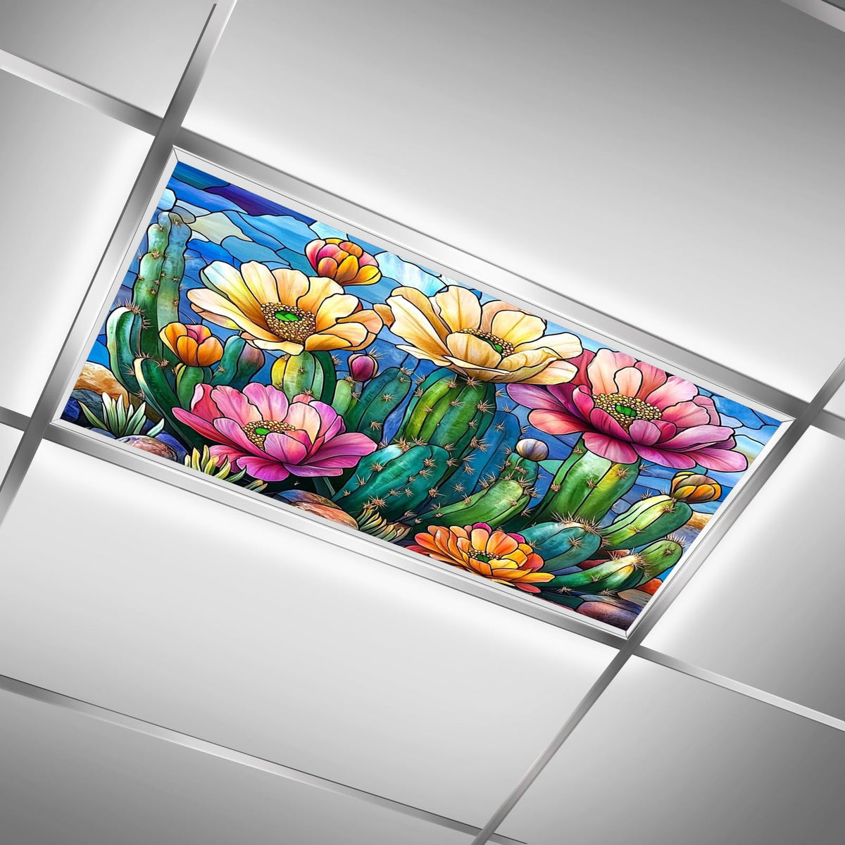 Msinmkok Stained Glass Cactus Fluorescent Light Covers For Ceiling Lights Classroom Office Decorative Drop Ceiling Light Cover F