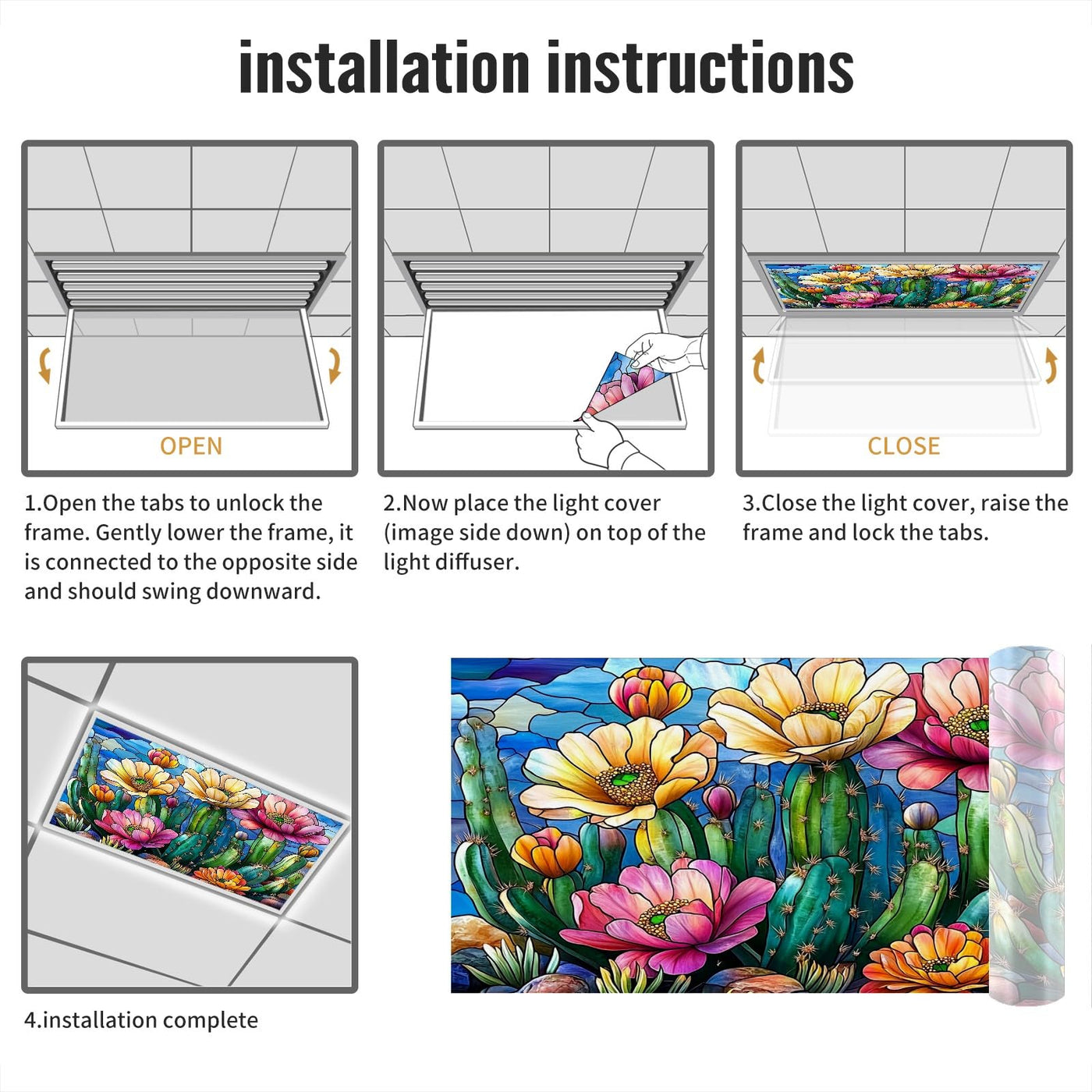 Lights Fluorescent Light Covers For Classroom Office Ceiling Lights Size: 47.2'' X 23.6''. Standard 2X4 Ft Size Can Fit The Drop Ceiling Fluorescent Light. Material: Flexible Pet Material (Not Fabric).&Nbsp; Fluorescent Light Covers Features: 1.Reducing Glare: The Ceiling Light Cover Effectively Softens The Harsh Fluorescent Light, Reducing Eye Strain. 2.Aesthetics: Decorative Fluorescent Light Covers Can Be Designed With A Variety Of Patterns, Enhancing The Aesthetic Appeal Of The Environment. 3.Size Adaptability: The Light Covers For Ceiling Can Be Slightly Trimmed To Fit Ighting Fixtures. 4.Non-Magnetic Design: The Fluorescent Light Cover Is Non-Magnetic And Can Be Installed By Inserting It Into The Panel. Alternatively, Additional Securing Methods (Such As Double-Sided Tape) Can Be Used To Ensure A Stable Installation Outside The Panel. 5.Suitable For Most Room,Such As Office, Classroom, Hostpital, Library, Clinics, Playroom, Nursery, Kindergarten, School, Hotel, Bar, Night Club And So On.
