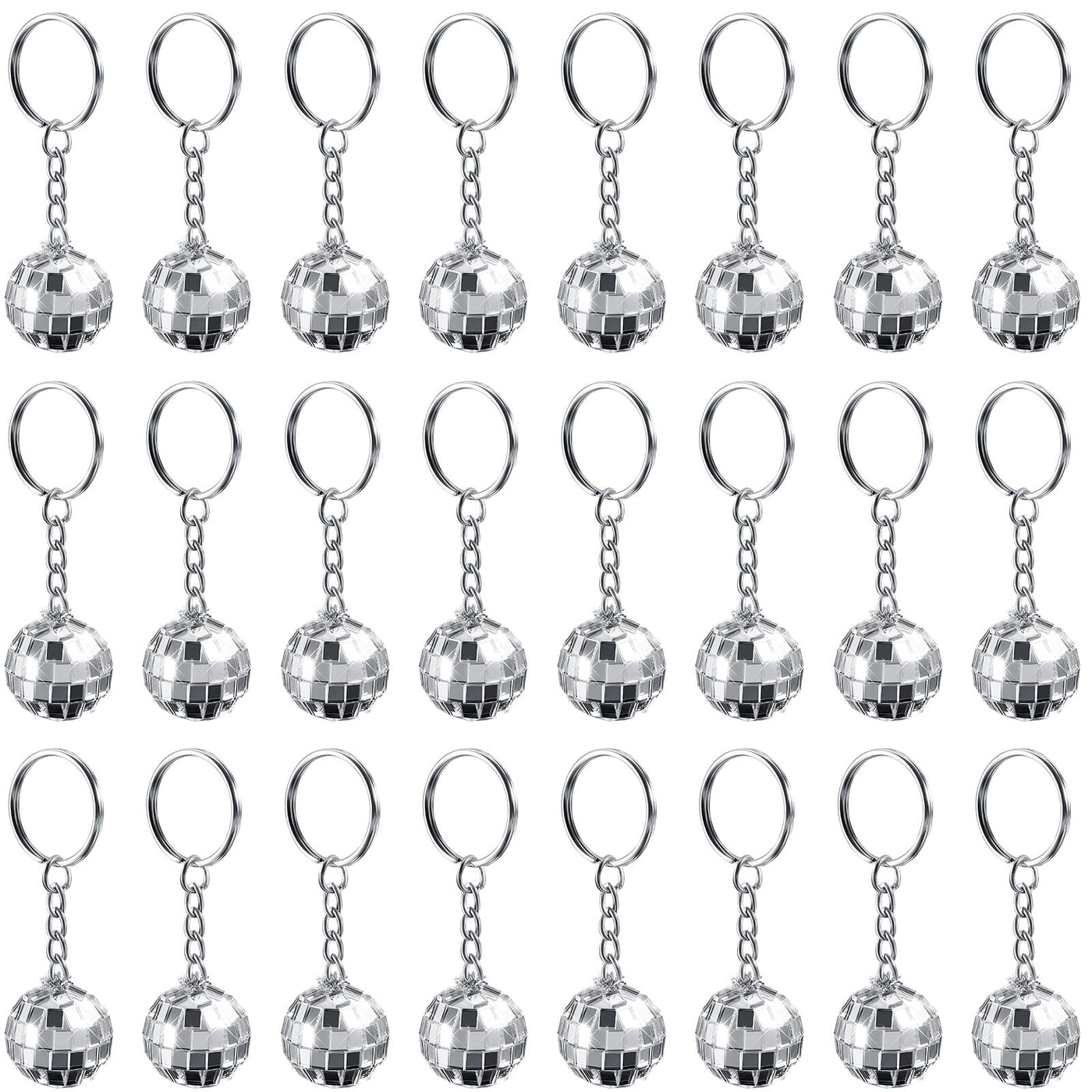 Mtlee 24 Pack Mini Mirror Disco Ball Keychain Last Disco Bachelorette Retro 60S 70S Keychain For Party Favors Set Cowgirl Supplies(Silver)