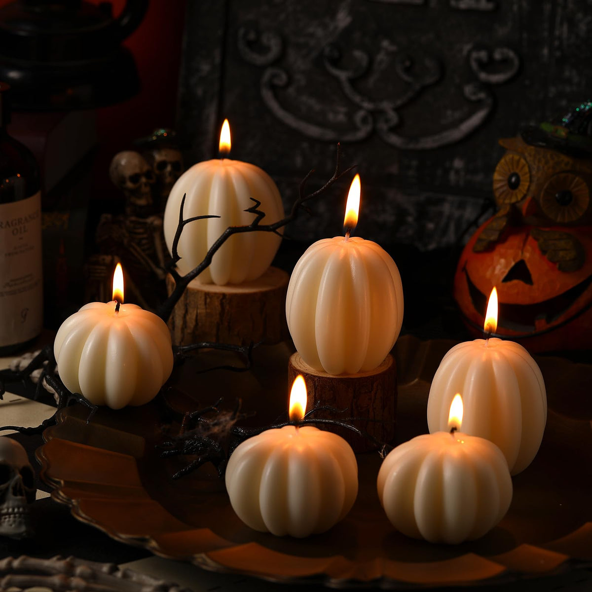 Q: How should I care for and store the pumpkin candles?A: To ensure the longevity of the pumpkin candles, store them in a cool, dry place away from direct sunlight. When using them, place them on a stable surface and avoid placing them near flammable materials.
