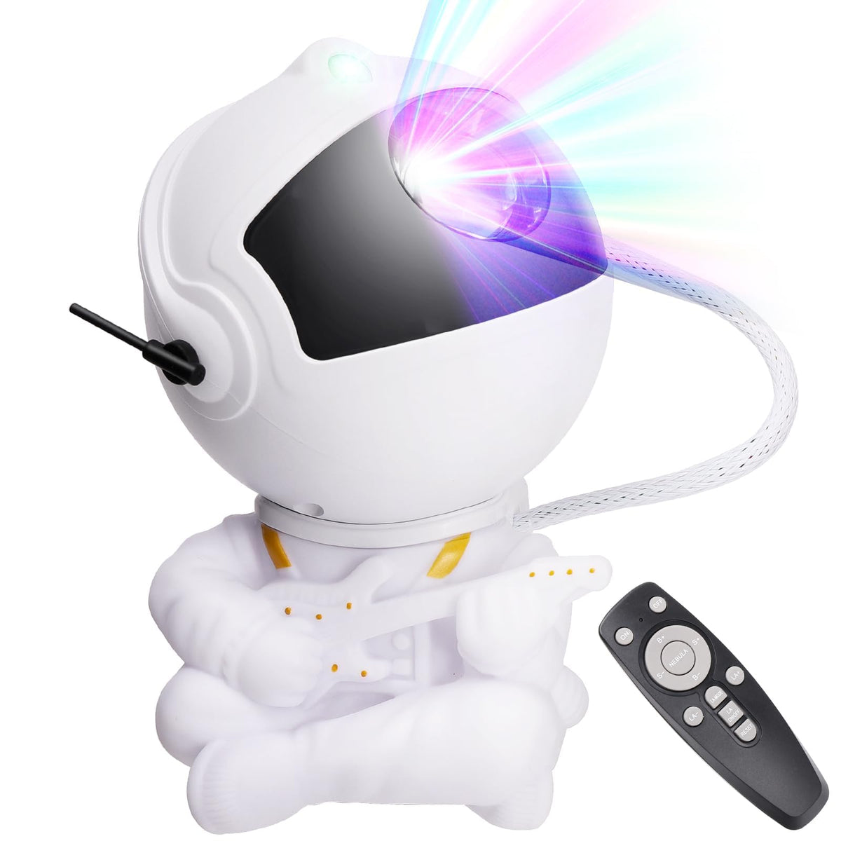 Q: What unique features does the MUAOSKY Galaxy Projector offer?A: The MUAOSKY Galaxy Projector features a unique astronaut design with a magnetically connected head that allows for easy adjustment and a full 360-degree rotation to customize the projection angle. It also offers 8 different nebula modes and laser starlight options for a versatile starry sky experience.