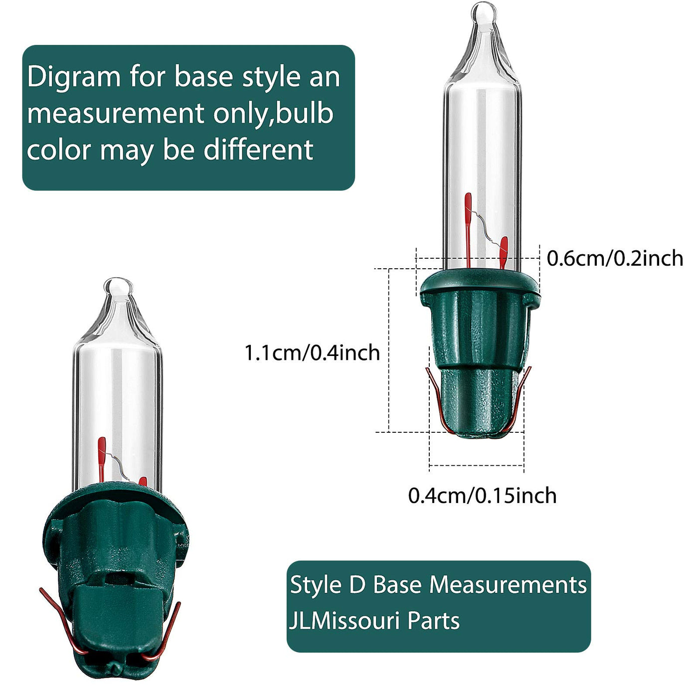 Q: What are the specifications of the Mudder 60 Count Mini Incandescent Replacement Bulbs?A: The Mudder 60 Count Mini Incandescent Replacement Bulbs are 2.5 volts, with a wattage of 0.425 watts and an amperage of 0.17 amperes. The base height is 1.1 cm (0.4 inches) and the base diameter is 0.4 cm (0.15 inches). The bulb diameter is 0.6 cm (0.2 inches), making them suitable for various incandescent wire string lights.