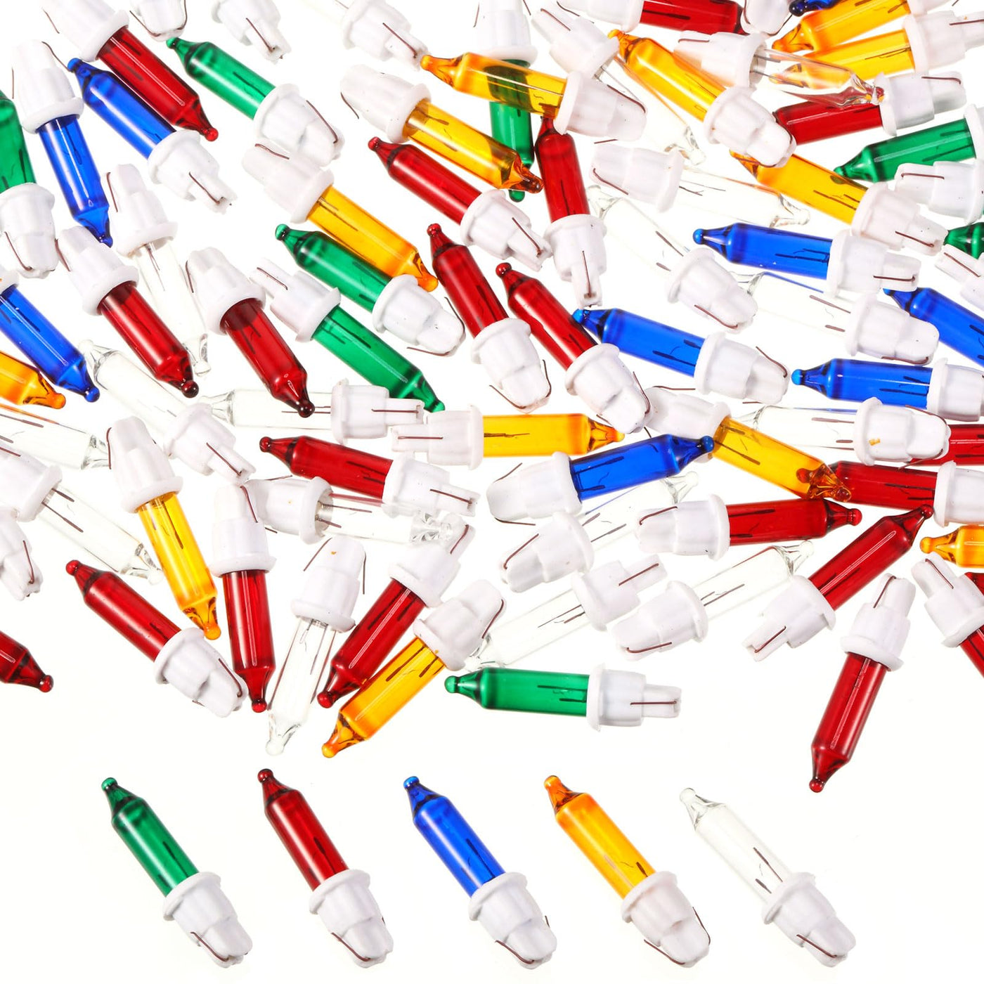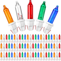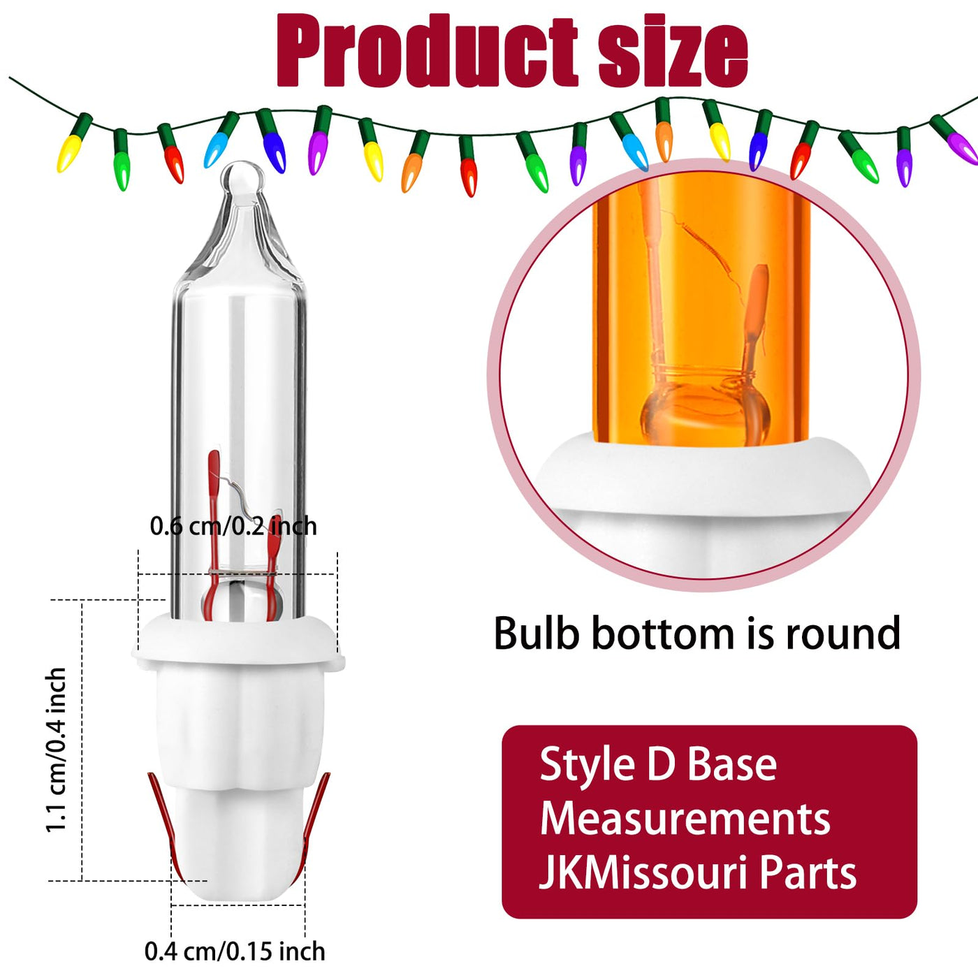 Q: What are the specifications of the Mudder Christmas Mini Incandescent Wire String Lights?A: The Mudder Christmas Mini Incandescent Wire String Lights feature bulbs that are 2.5 volts, 0.425 watt, and 0.17 ampere. The base height is 1.1 cm (0.4 inch), the base diameter is 0.4 cm (0.15 inch), and the bulb diameter is 0.6 cm (0.2 inch). This makes them compatible with 50/100/150/200 count incandescent wire string lights.